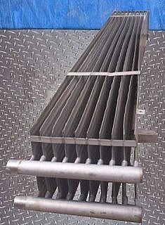 Dean Products Inc. Immersion Bank Assembly. S/N: 14405. MAWP: 238 psi @ 366 °F. Consists of (10) 15 ft. 8 in. L x 24 in. W heat transfer immersion sections. 304 SS. Reduces condensate build-up common with typical header and multiple header die-formed embossed plate heat exchangers. Reduces fatigue failure caused by condensate build-up and problems common to conventional pre-formed heat transfer surfaces. Applications include high pressure, high temperature, or corrosive environments. Inlets/outlets: 3 in. dia. ports. Overall dimensions: 16 ft. 3 in. L x 32 in. W x 23 in. H. (BB)