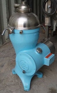 DeLaval Separator. Model: 226. S/N: 3680736. Flow capacity 475 gph. Inlet (1) 1 in. dia. ACME fitting, (1) 1-1/2 in. dia. ACME fitting. Outlet: (2) 6 in. L x 1-1/2 in. W. meshed port. Overall dimensions: 2 ft. L x 1 ft. 10 in. W x 2 ft. 10 in. H.
