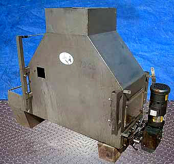 D&F Poultry Ice Hopper and Auger. Baldor motor, 1 hp, 1725 rpm, 208-230/460 V, 3.6-3.4/1.7 amps, 60 Hz, 3 phase. Flexaline motor drive, 60 ratio, maximum input: 0.9 hp, rating: 1750 rpm, output: 28.75 rpm. Stainless steel body. Container capacity: 120 gallon. (3) Screws: 6 in. diameter x 47 in. L. Inlet: 20 in. L x 20 in. W. Outlet: 14 in. L x 12 in. W. Overall dimensions: 81 in. L x 29 in. W x 58 in. H. (ACN85)