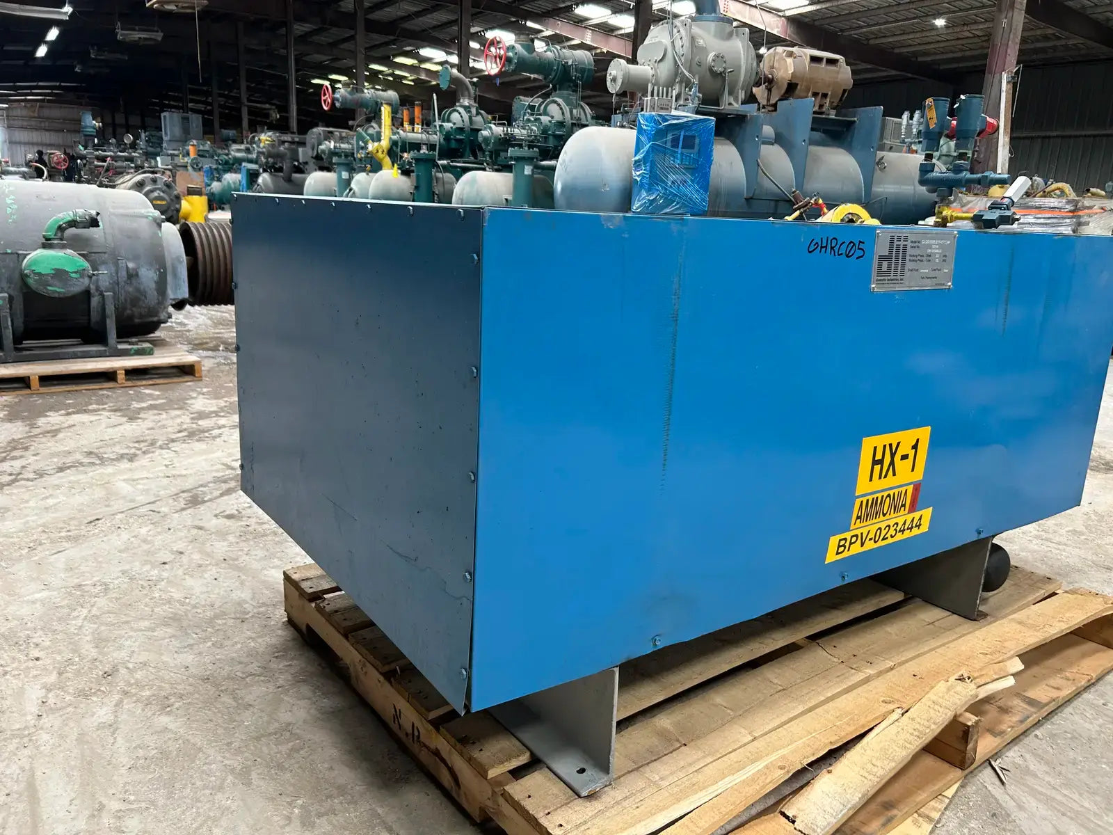 Doucette Industries, Inc Ammmonia Desuperheater. Model: CADS-55M5.5/1P-8T(C)HP. Serial No: 107-14 CRN-0H0454.9C. Working Pressure - Shell: 300 PSI, Tube: 150 PSI. Shell Fluid: Ammonia. Tube Fluid: Water.