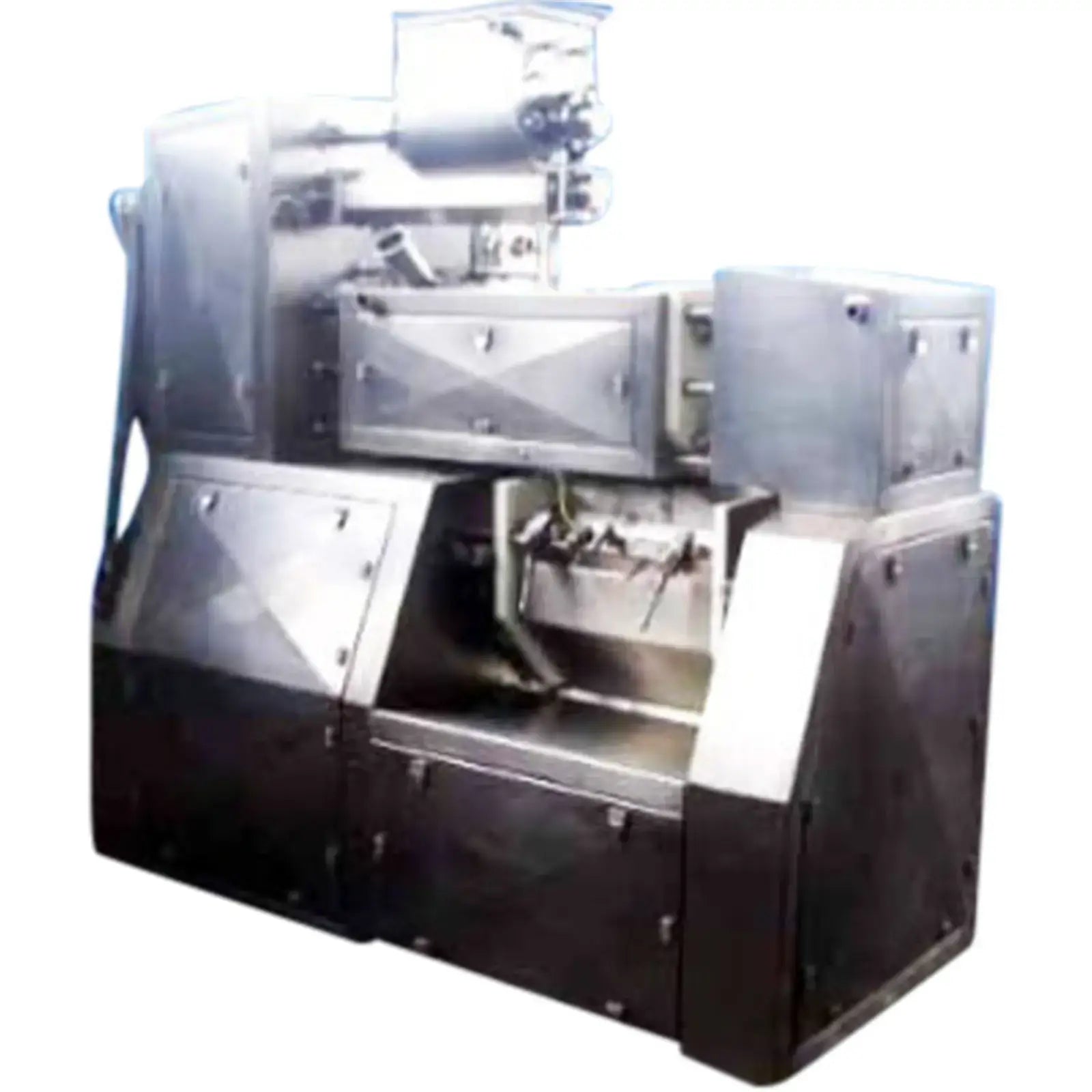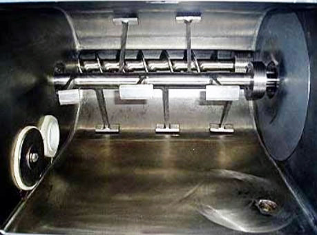 DINO Machinery Corporation Multi-Pasta Processor System. Model: MKF-3000. Material of construction: 316 stainless steel. Approximate blender capacity: 1.15 cu ft. Blender: (6) 8 in. dia. x 1 ft. 2 in. L paddles. Screw auger, dimensions: (1) 2 in. dia. x 1 ft. 2 in. L. Hopper inlet / outlet: 7 in. dia. x 1 ft. 9 in. L / 1 ft. 9 in. W x 2-1/2 in. H. Drive units: (1) Sumitomo SM-Cyclo drive with Baldor motor: 10 hp. (1) 7.5 hp Sew Eurodrive motor and drive, 3 phase. (1) 5 hp Sew Eurodrive motor and drive, 3 phase. (1) 1 hp Sew Eurodrive motor and drive, 3 phase, (2) Hub City motor drives, and Telemecanique limit switches. Inlets/outlets: (2) 1-1/2 in. dia. Q-line fittings, (2) 2 in. dia. Q-line fittings, (1) 3 in. dia. Q-line fitting. Overall dimensions: 8 ft. L x 5 ft. 8 in. W x 7 ft. 4 in. H.(H17).