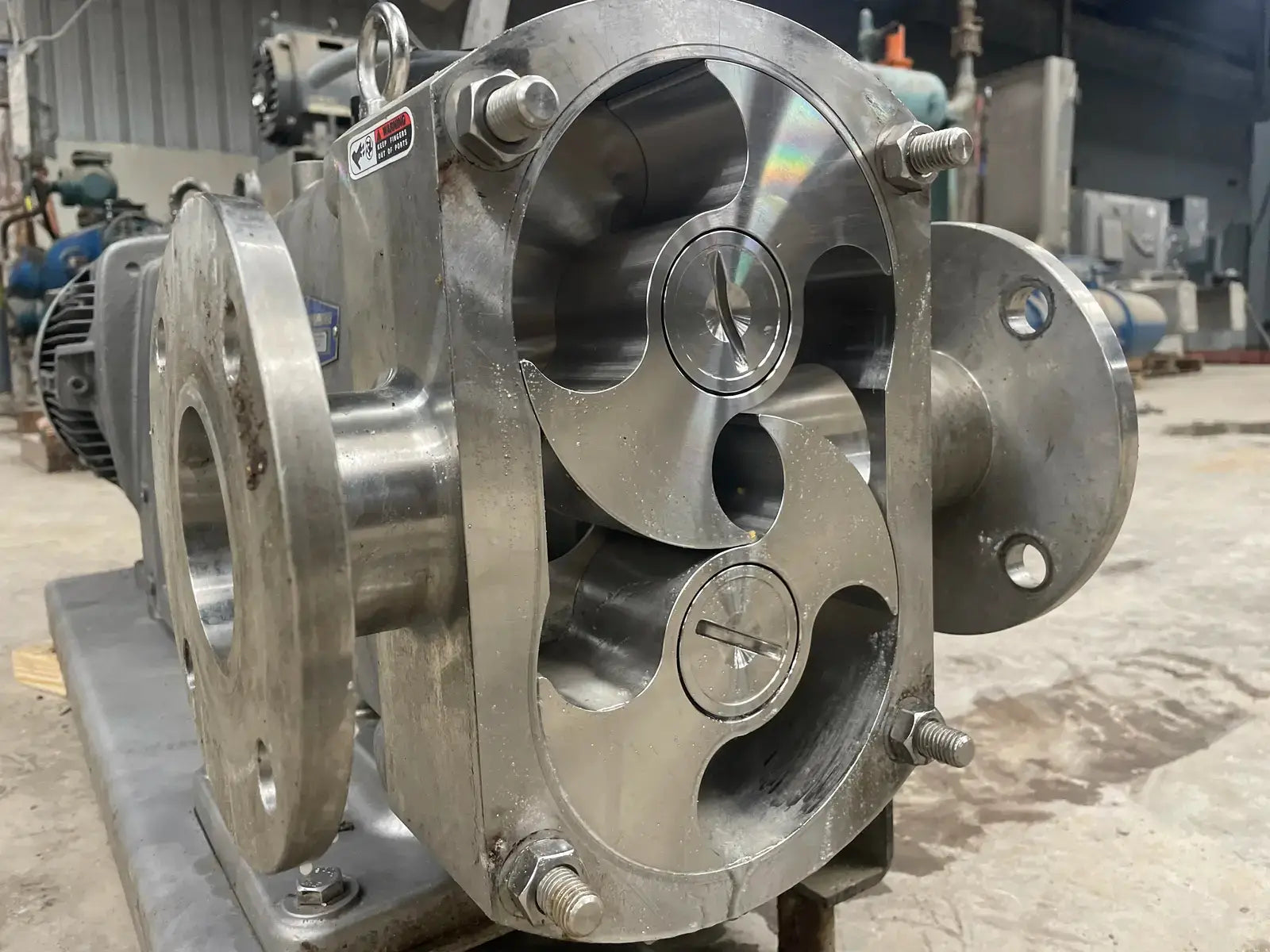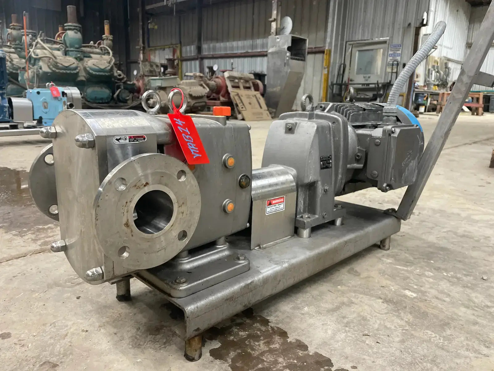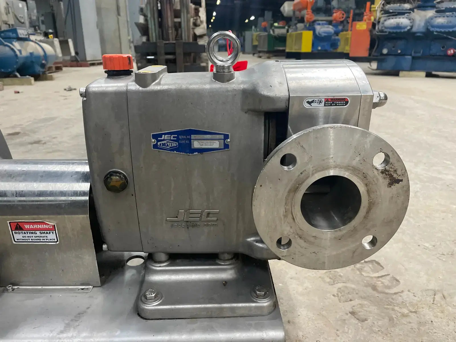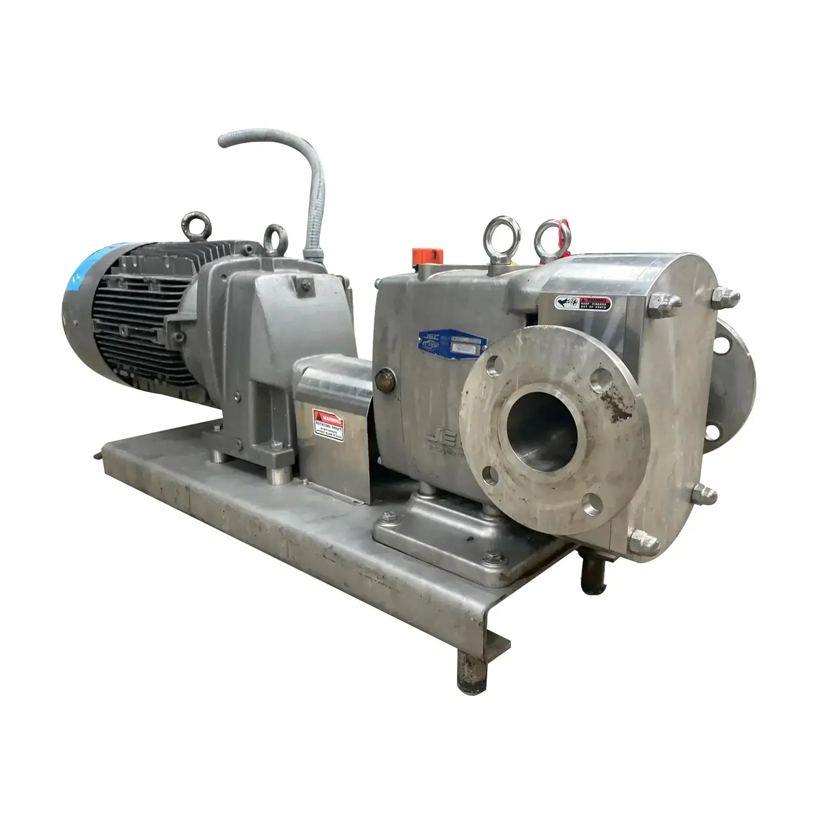 Dixon Positive Displacement Pump. Model: JRZL-330, Serial No: 062817-03-55. Driven by a Nord Drive System Drive: HP: 20, RPM: 2360, Volts: 230/460, Amps: 47.6/23.8. Ratio: 3.08. Flanged Inlet/Outlet: 3 in.
