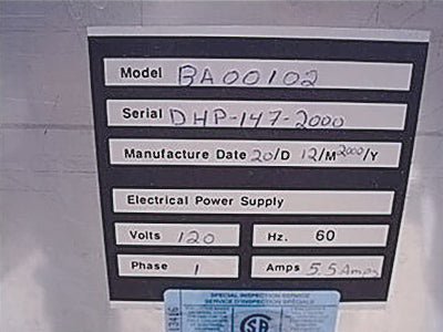 2000 Doboy (now Boss Packaging, Inc.) “BaggerBoss” Automatic Bagging Machine. Model: BA00102. With an approximate capacity rating of (32) 10 lb. bags per minute, this automatic bagging machine is designed to open, fill and transfer pre-made wicketed bags into a sealing/closing machine. Features include: easy and rapid product change over requiring no additional tools, ease of integration with other machines and scales, and computer control fault diagnostics. Allen Bradley Panel View 550. Power supply: 120 V. Currently non-operational. Overall dimensions: 5 ft. 4 in. L x 3 ft. 7 in. W x 6 ft. 7 in. H.(ACN679). (GM).