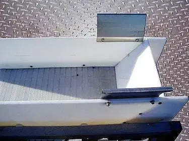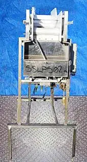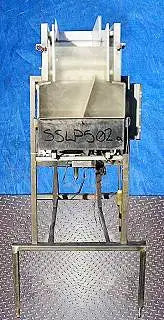 Double Drop Stainless Steel Conveyor. Uses (2) 11-1/2 in. W plastic conveyor belt. This two-level system has a 4 in. drop from top conveyor to bottom conveyor. Sunshine Control box. BIMBA air controlled piston for choosing left or right side exit port. Baldor Industrial Motor, 1/2 hp, 1750 rpm, 90 V, 4.8 amps. Hub City speed reducer, ratio:50, final speed: 35 rpm. Discharge height: 50 in. Inlets: (1) 13-1/4 in. x 8-1/2 in. infeed. Outlets: (2) 6 in. W x 5 in. L outlet ports. Overall dimensions: 61 in. L x 36 in. W x 89 in. H.