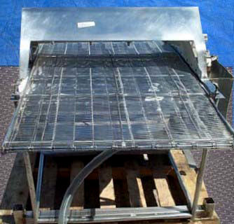 Double Stainless Steel Conveyor. Belt #1 dimensions: 28 in. L x 30 in. W. Belt #2 dimensions: 101 in. L x 30 in. W. Product clearance above belts: 3-¼ in. Overall dimensions: 63 in. L x 48 in. W x 40 in. H.