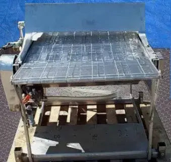 Double Stainless Steel Conveyor. Belt #1 dimensions: 28 in. L x 30 in. W. Belt #2 dimensions: 101 in. L x 30 in. W. Product clearance above belts: 3-¼ in. Overall dimensions: 63 in. L x 48 in. W x 40 in. H.
