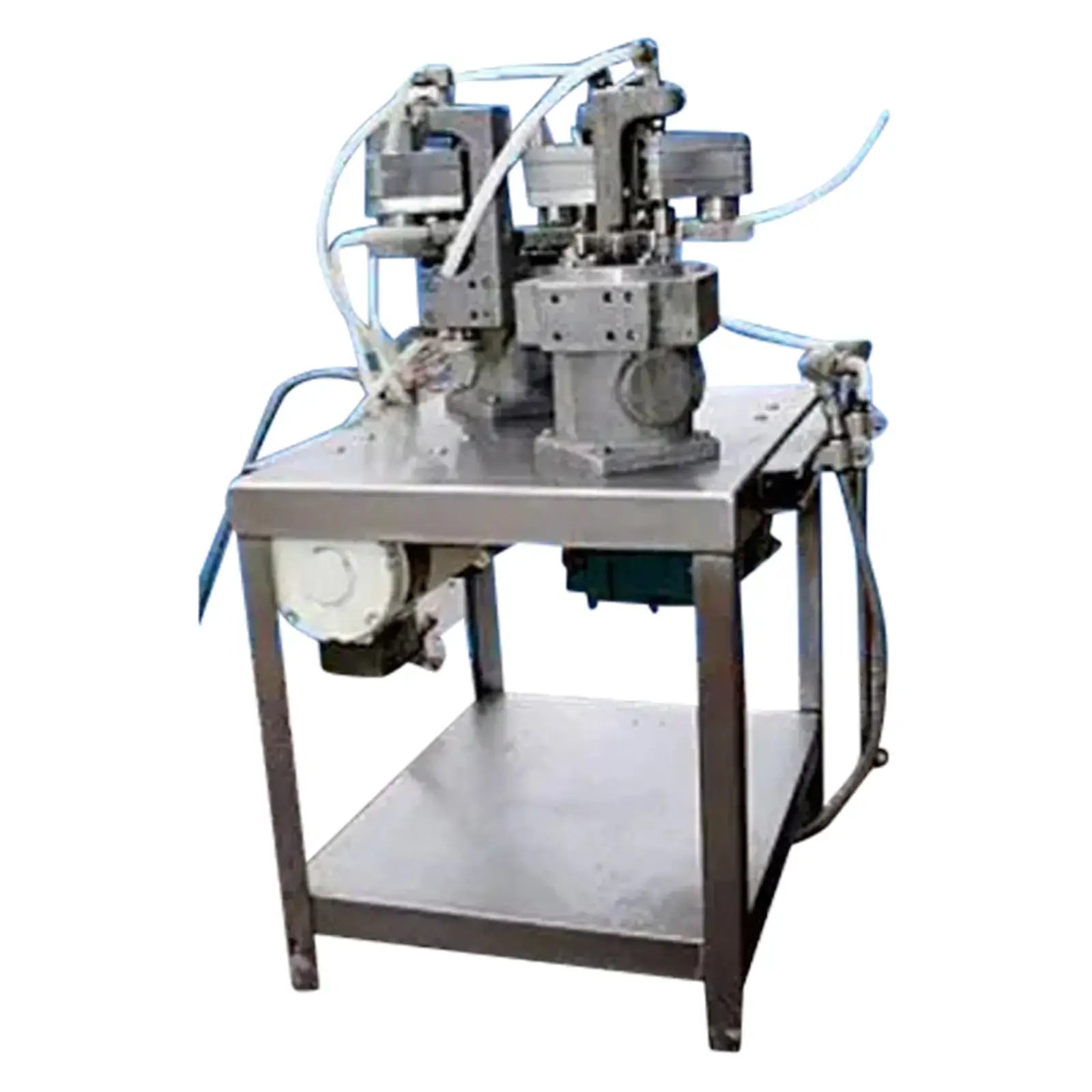 Dual Pump System. (2) Lesson Motors (Washdown Design), 1/2 hp, 1750 rpm, 90 V, 4.9 amps. (2) Dodge Gear Drives 12.70 ratio, 1750 input rpm, 137.8 output rpm. Torque: 257 in./lb. Overall dimensions: 29 in. L x 27 in. W x 40 in. H.