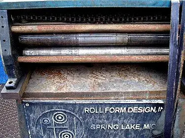 Durant Tool Company Stock Straightener. Model SS-18. Serial 1971. Width is 18 in. (2) drive rolls, (9) straightening rolls. 2 in. dia rolls. Thickness range is .20-.094 in. The SS series is a un-motorized stock straightener. These units are ideal machines for either manually straightening materials with a hand crank or automatic pull through operations. Overall dimensions: 41 in. L x 33-1/2 in. W x 43-1/2 in. H.