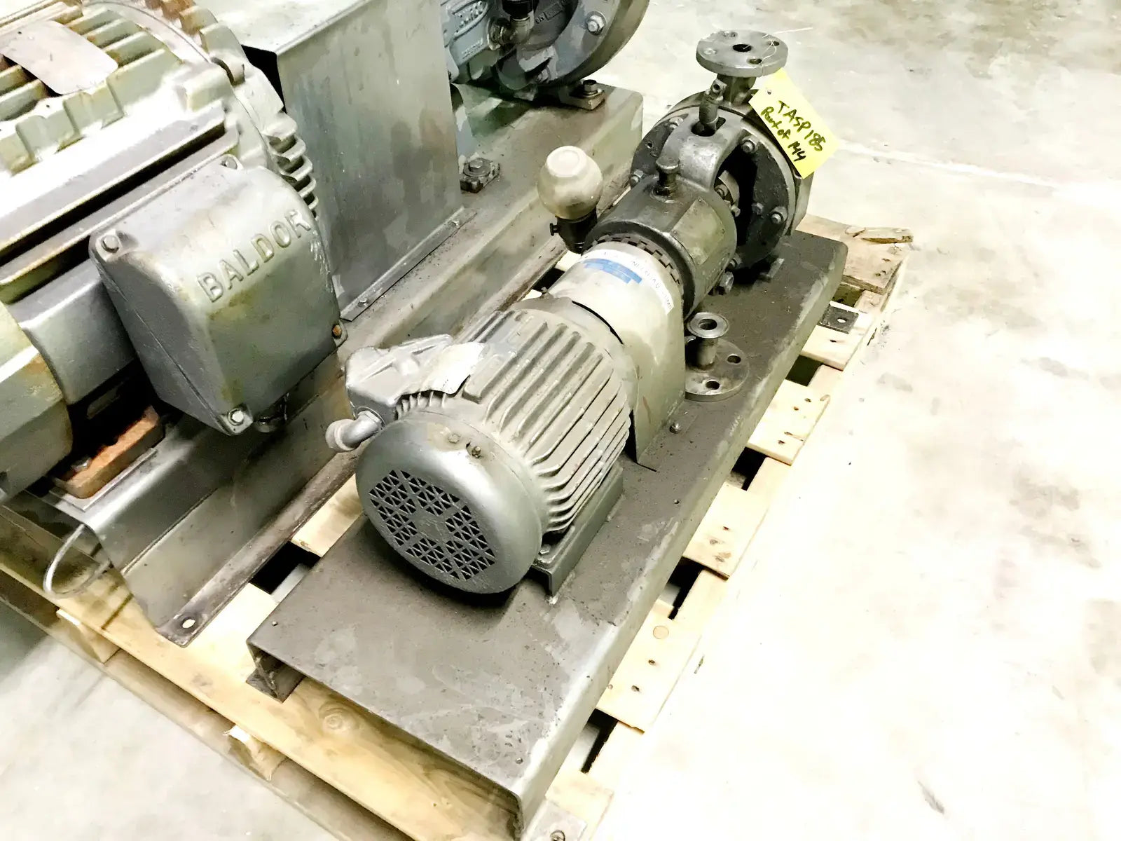 Durco Centrifugal Pump. Size: 1J 1.5x1-4/40. Serial: 362636. Alloy: D4. Seal: Crane 1. X/XP661C1. PO: F-0454. Baldor motor: 1.5 HP, 230/460V, 3450 RPM, 60 hz, 3-phase. Previously used as an Essence Discharge Condensate Pump.
