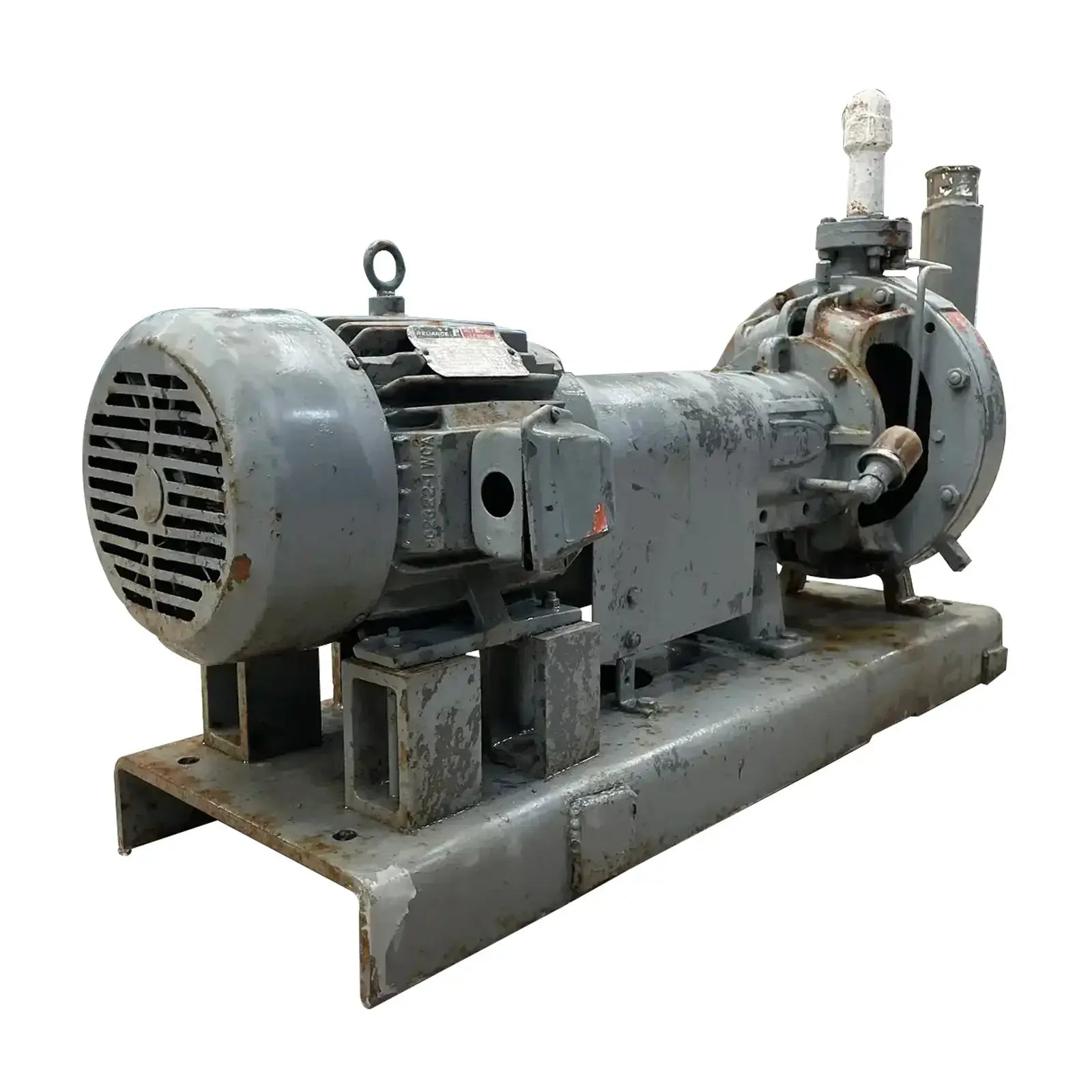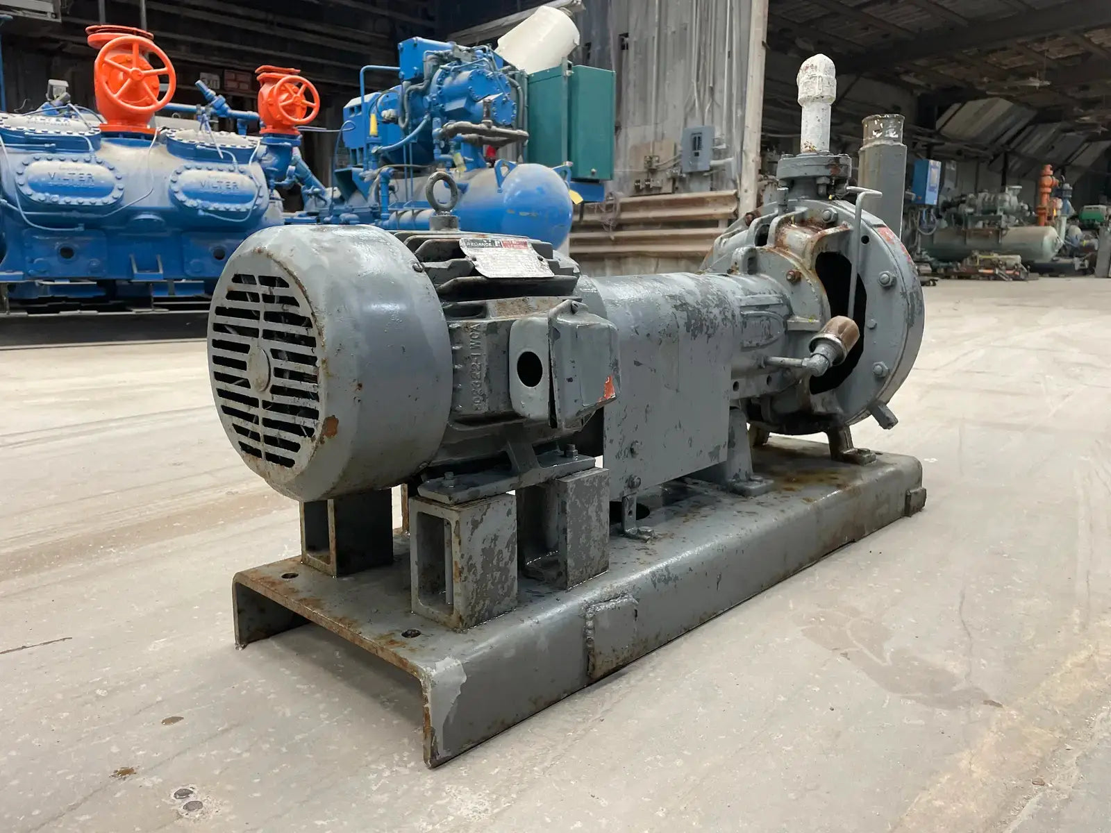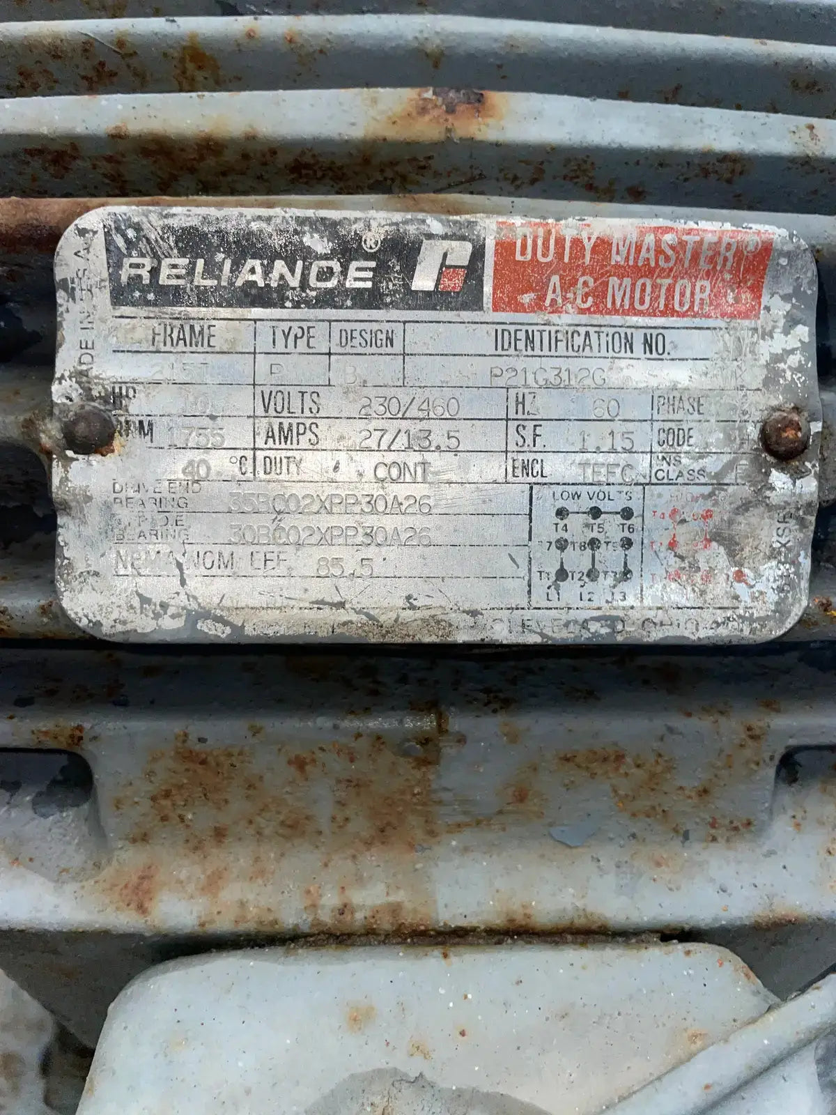 Durco Mark 3 ANSI Chemical Process Pump. Reliance Duty Master AC Motor: Frame: 215T, HP: 10, Volts: 230/460, Amps: 27/13/5, Hz: 60, Ph: 3, RPM: 1755, Duty: Cont., Encl: TEFC.