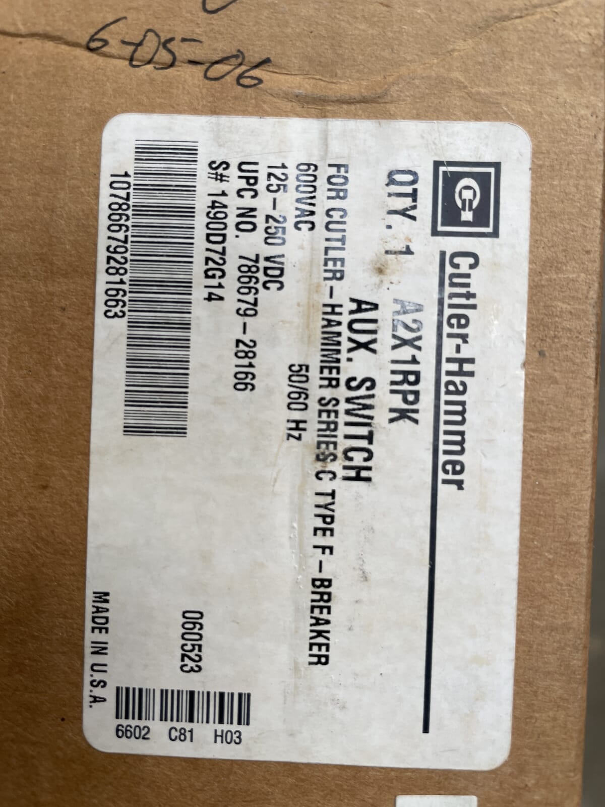 Eaton Cutler-Hammer Circuit Breaker Auxiliary. Type: A2X. For type F Frame HMCP breakers. Family C Series. Power Supply: 600VAC, 50/60 Hz, 125-250 VDC.