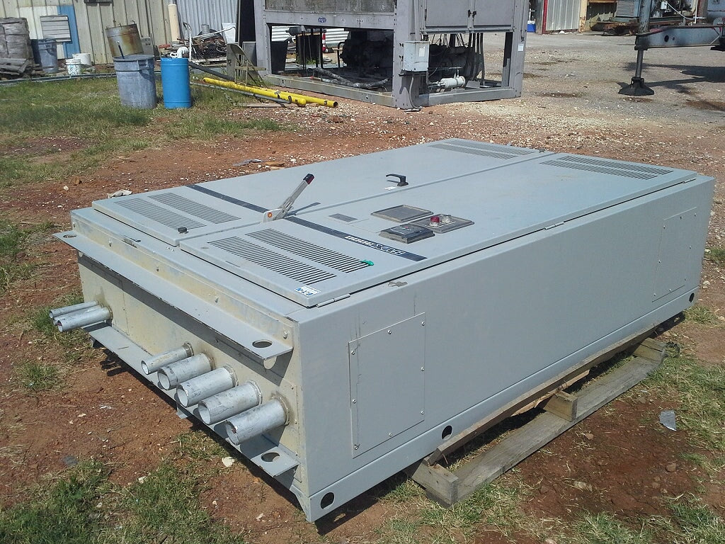 Eaton SVX 9000 Adjustable Frequency Drive Starter. Serial No: 12784850. Cat No: SVX80014AAP1P3. G.O. & Style: SYW99265-001. Nominal HP: 800. IL Overload : 1.10. Software Code: 0. Date Code – 071210. Enclosure: Oversized Nema Type 1. Input: 480 VAC, 3 Ph, 550/60 HZ, 930 A RMS. Output: 0 to 480 VAC, 3 Ph, 1 to 500 HZ, 960 A RMS. Overall dimensions: 60 ft. W x 2 ft. 6 in. L x 8 ft. 3 in. H.