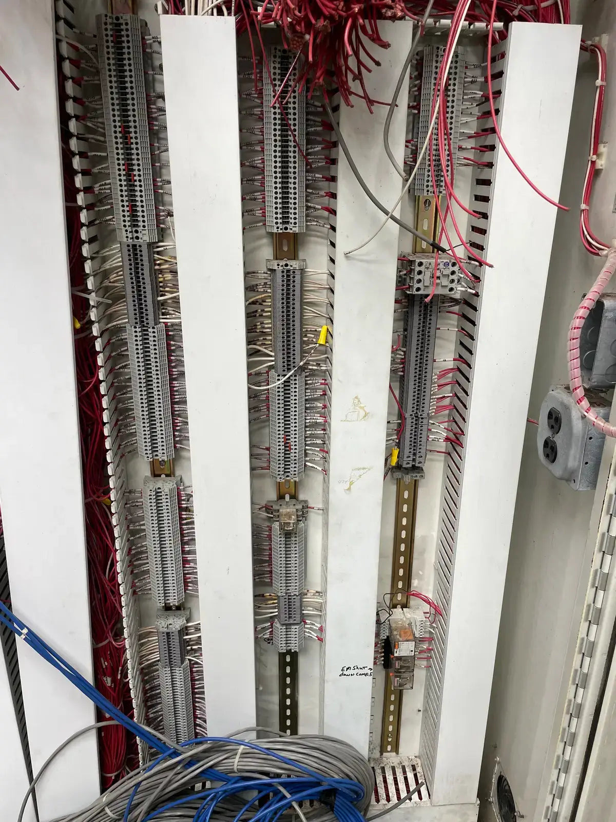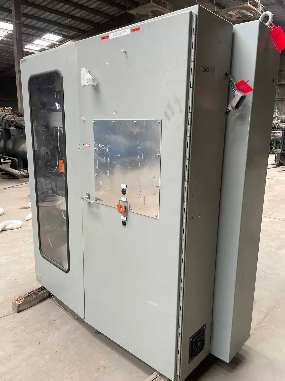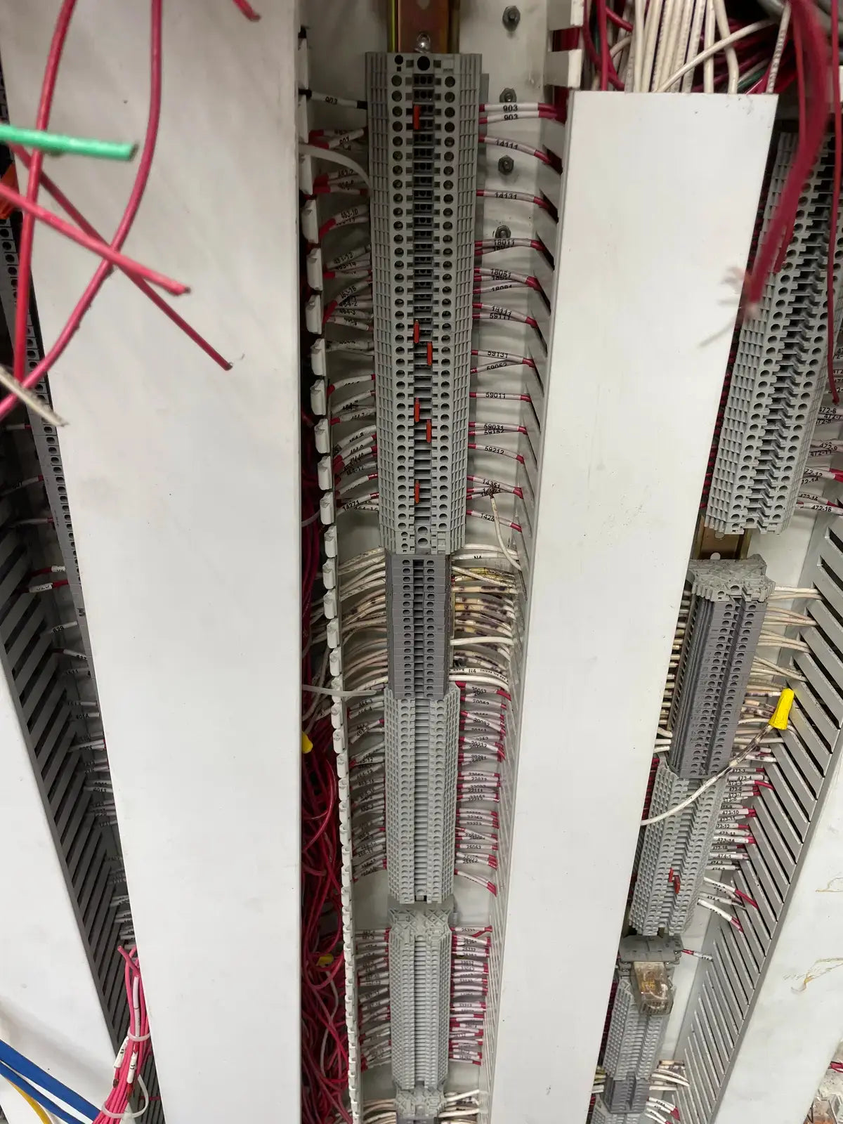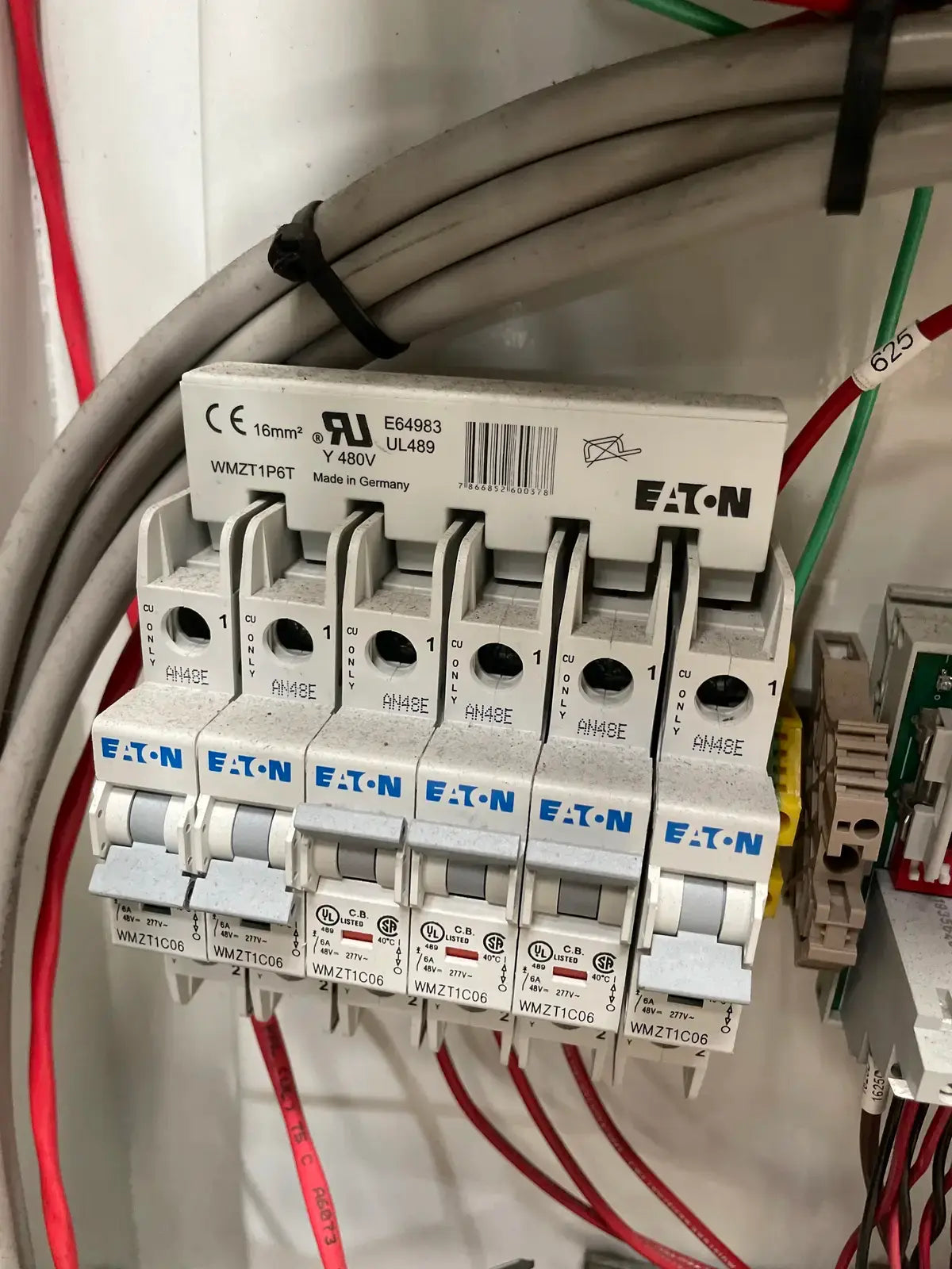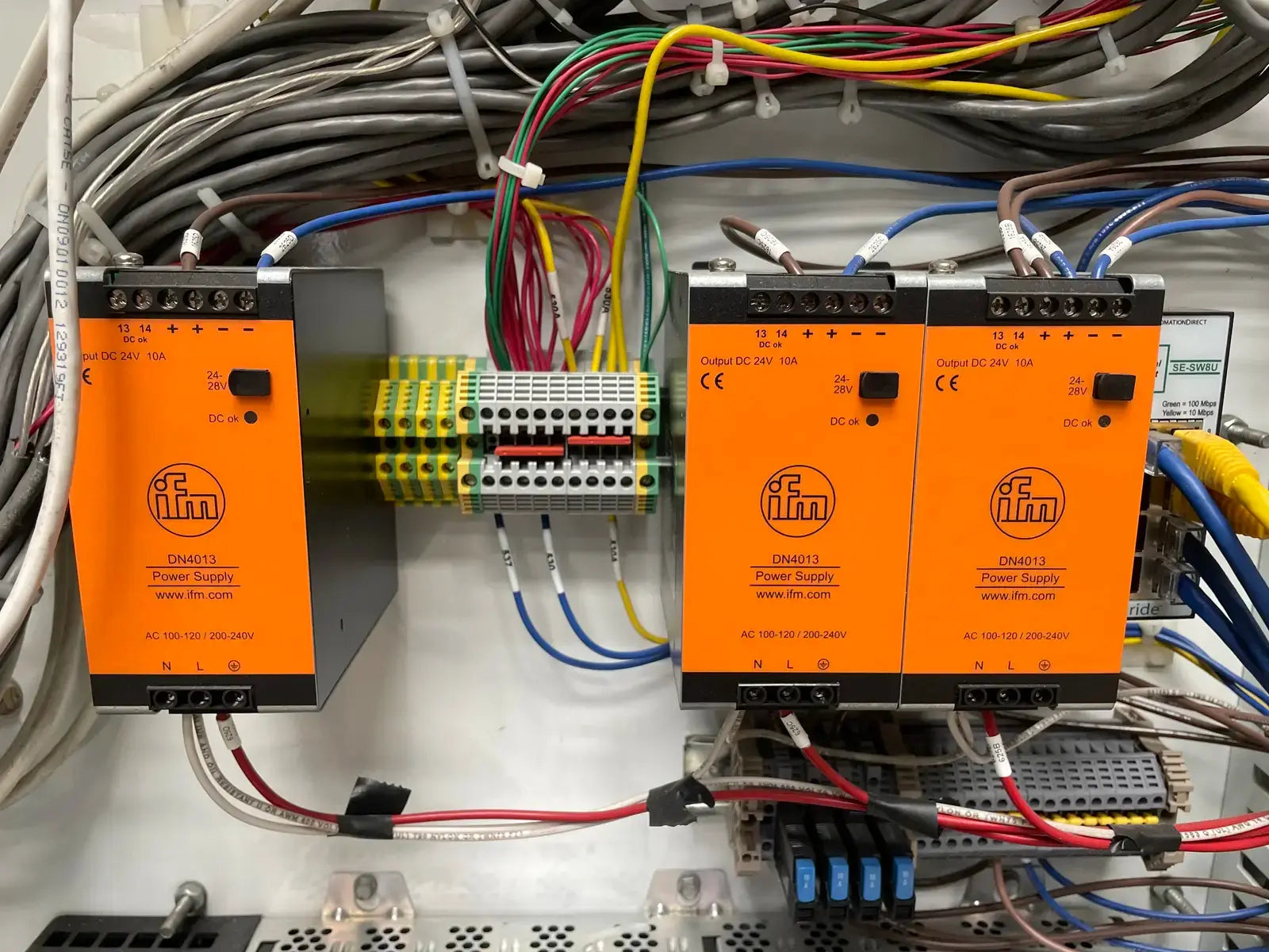 Electric Controls Inc. PLC Control System. Job No: EC 95-2007. Date: 2-21-1996. Power Supply - Volts: 480, Ph: 3, Amps: 60. (3): Allen-Bradley AC Power Supply: Series: B. Model: 1756-PA72/B, Part No: 97060574 E01. (6) Allen-Bradley Analog Input Modules: Cat No: 1756-IF8H. (6) Allen-Bradley Analog RTD Modules: Cat No: 1756-IRT81. (1) Allen-Bradley Isolated Relay Output Module: Cat No: 1756-OQ16I. (3) IFM Switched-Mode Power Supply 24 V DC: Item No: DN4013. (1) Transient Voltage Surge Suppressor: Model HS-P-SP-120-60A-RU, Item No: ZH0S-020. (1) Stride Industrial Unmanaged Ethernet Switch: Model: SE-SW8U. (6) EATON WMZT Rail Miniature Circuit Breakers: Cat No: WMZT1C06.