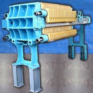 Eimco Shriver Filter Press, Size 30. S/N 27375-1. Plates- 41; plate dimensions: 40 in. L x 1 in. W. x 30 in. H. Maximum filtering pressure- 100 psi. Maximum thrust- 45 tons at 6,250 psi. Inlets/outlets: (4) 2 in. dia. ports. Overall dimensions: 10 ft. L x 24 in. W x 70 in. H.