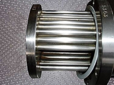 2001 Enerquip Shell and Tube Heat Exchanger. S/N: 5363. Nat'l Bd: 3943. 3-A sanitary rated. 10 sq. ft. total surface area. 316 stainless steel. (42) 3/8 in. dia. x 30 in. L tubes. Two pass heat exchanger. Shell side MAWP @ 375 °F: 150 psig. Tube side MAWP @ 375 °F: 150 psig. Shell side MDMT @ 150 psig: -20 °F. Tube side MDMT @ 150 psig: -20 °F. Applications include processing milk and milk related products. Inlets: (1) 1 in. dia. NPT (male, media), (1) 2 in. dia. S-line fitting. Outlets: (1) 2 in. dia. S-line fitting. Overall dimensions: 9 in. dia. x 36 in. L.