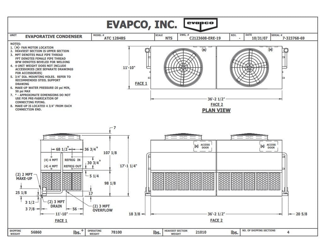 Evapco ATC-1284B Evaporative Condenser Tower (1 Tower Unit, 642 Ton)
