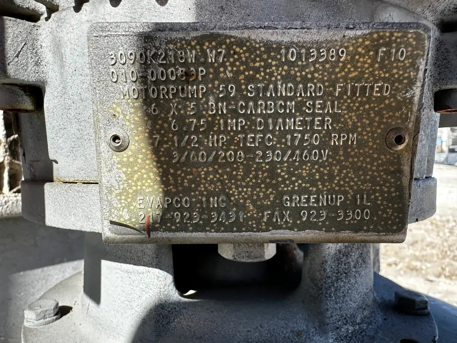 EVAPCO Evaporative Condensor. Model: ATC-1284E-1G. Serial Number:10-396205 This package contains (1)Tower Unit. 642 Nominal Tons. 455.5 Ammonia Tons. Previously Ran with Ammonia (R-717).2 Motors are included. Previously Paired As A Package.
