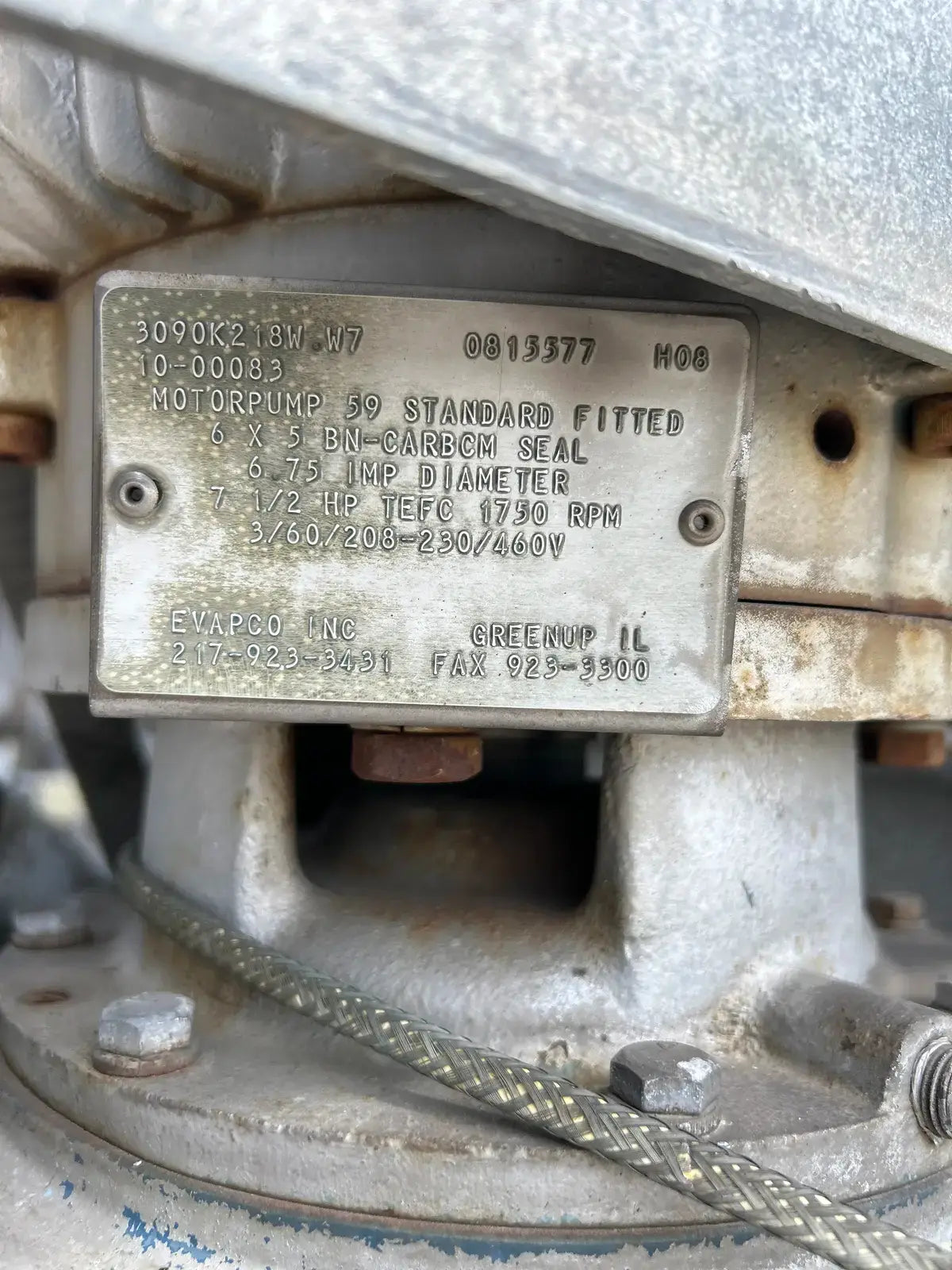 - If Multiple Motors, Motor Descriptions vs specs: (1) 40 HP Fan Motor. (1) 7.5 HP Spray Pump Motor.