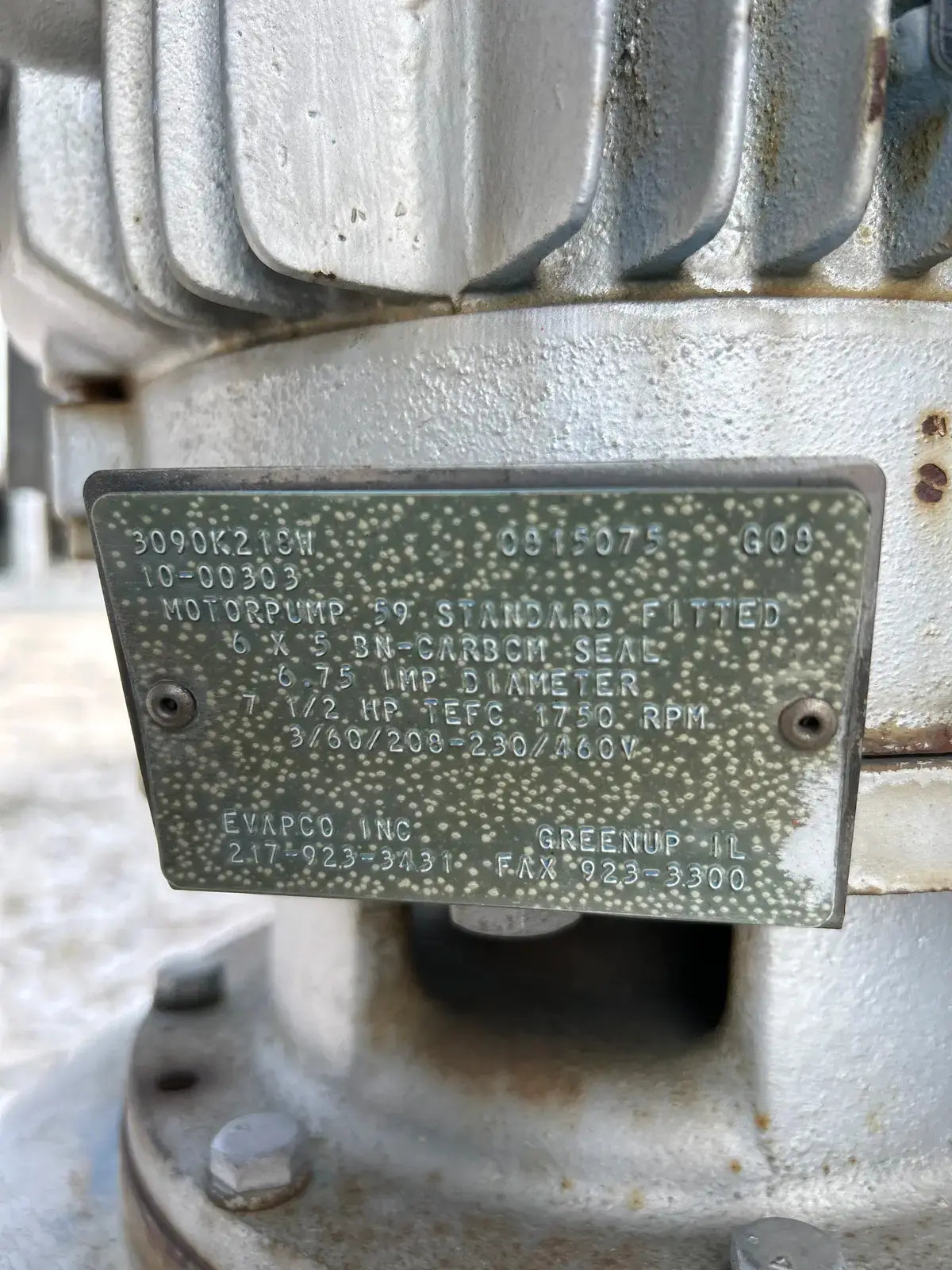 - If Multiple Motors, Motor Descriptions vs specs: (1) 40 HP Fan Motor. (1) 7.5 HP Spray Pump Motor.