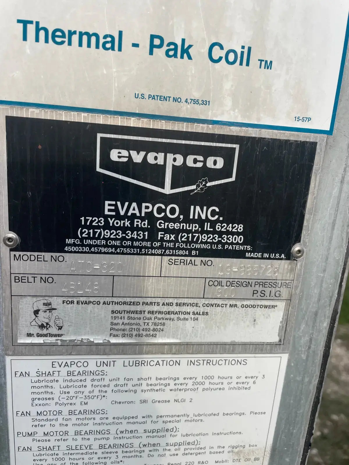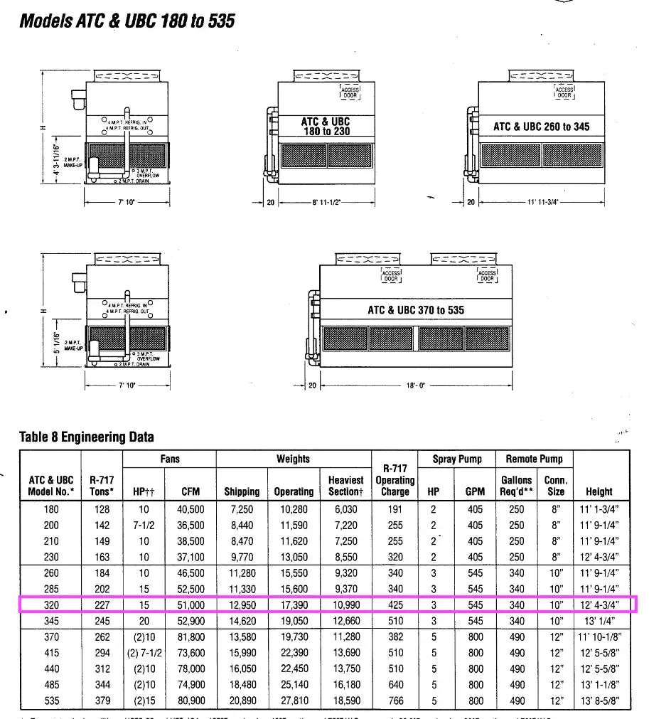 Evapco ATC-320 Evaporative Condenser ( 320 Nominal Tons, 2 Motors, 1 Tower Unit)