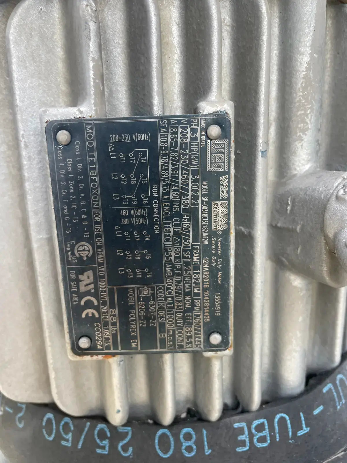 - If Multiple Motors, Motor Descriptions vs specs: Spray Pump(1): 3 HP. Fan Motor (1): 10 HP
