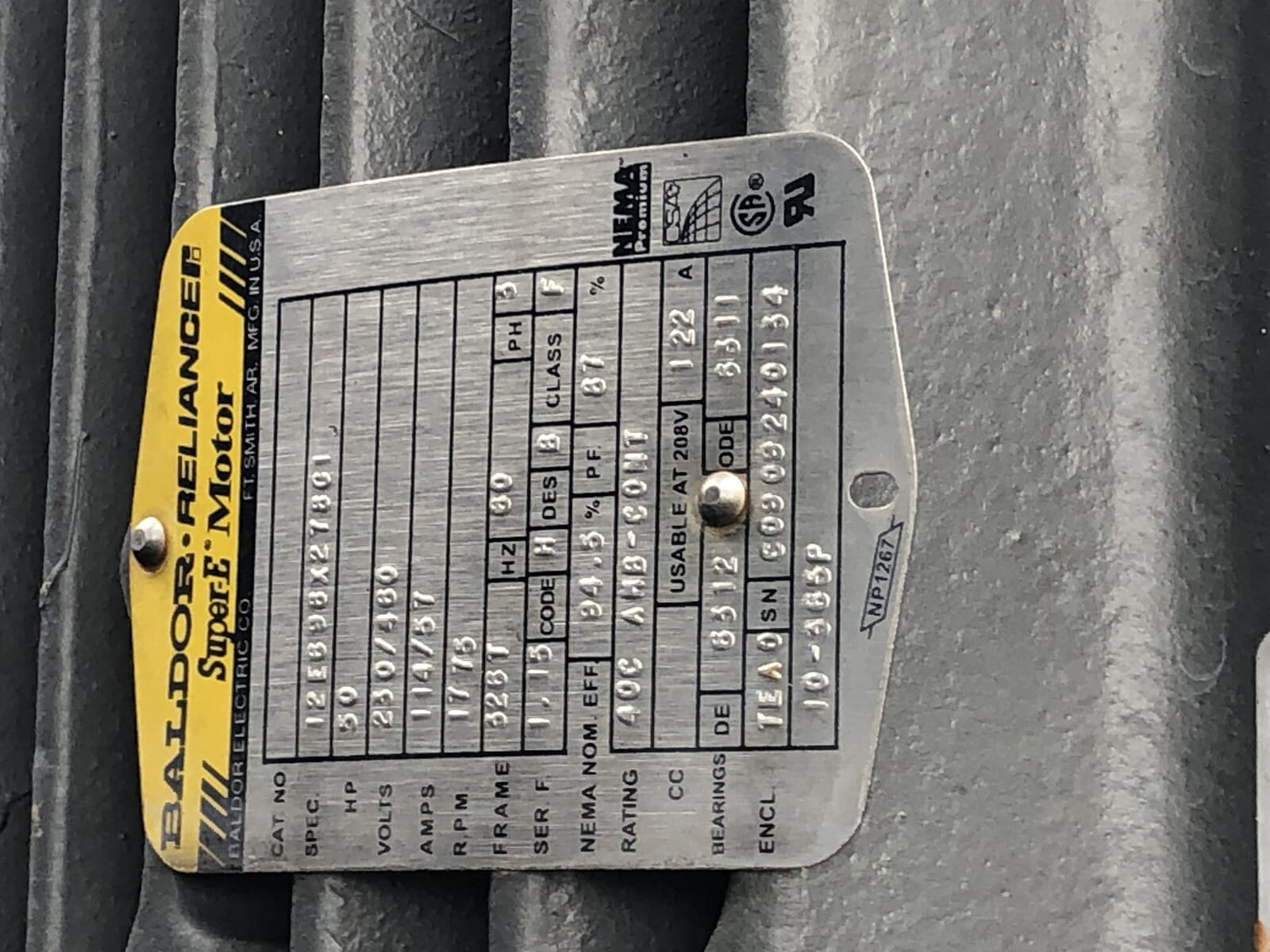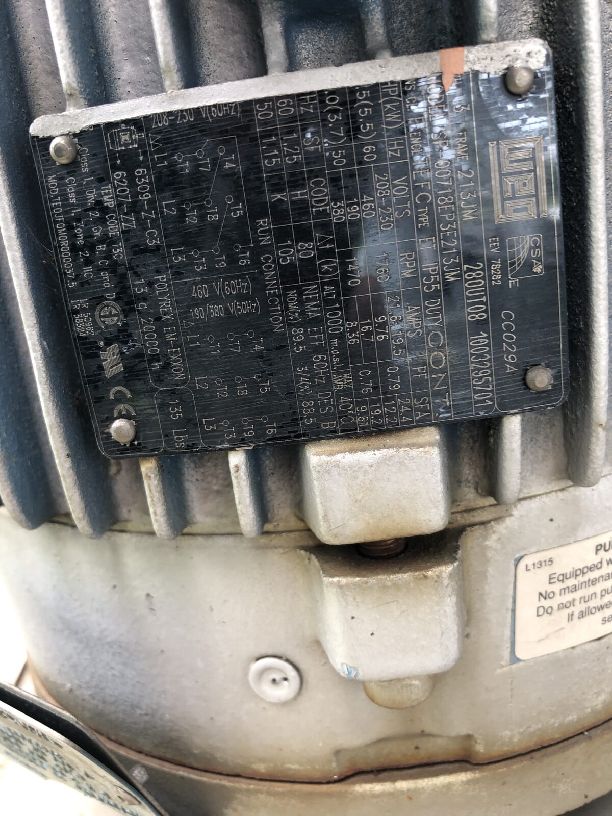 - Motor Manufacturer: WEG