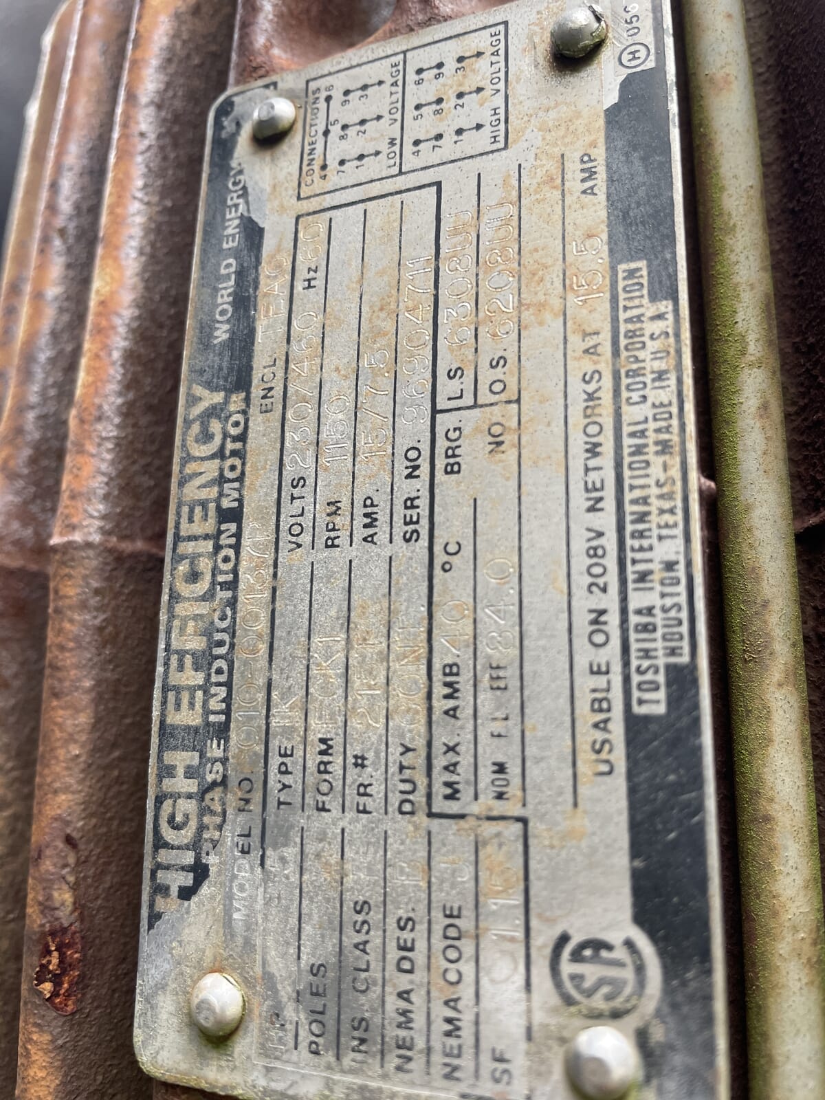 Evapco Closed Circuit Cooler. Model No: ATW-45C2, Serial No: 970995. Coil Test Pressure: 350 PSIG. Scot motor pump 55 Standard fitted 3 x 3 BN-CM Seal. 5.19 Impeller diameter. 1 1/2 HP, TEFC, 1750 RPM, 3/60/208-230/460.