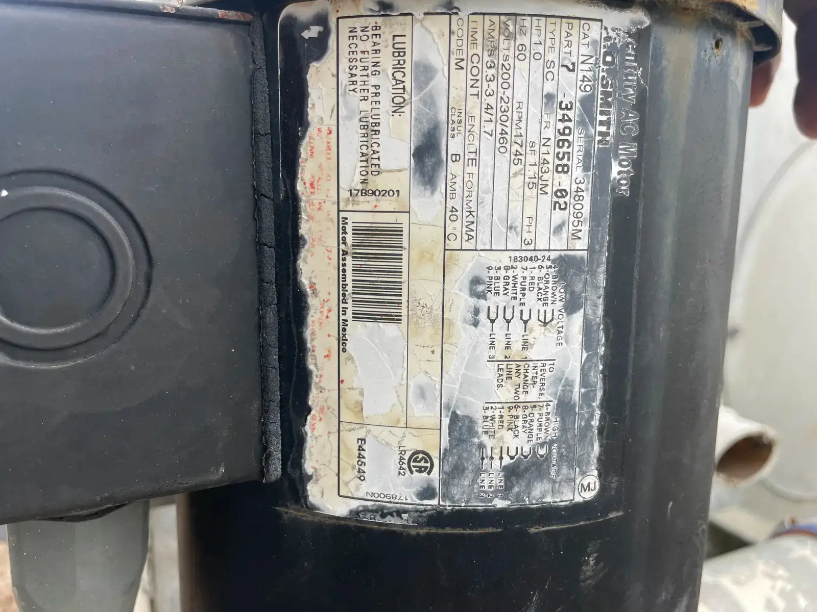 - If Multiple Motors, Motor Descriptions vs specs: (1)3/4 HP Water Pump Motor. (1) 10 HP Fan Motor.
