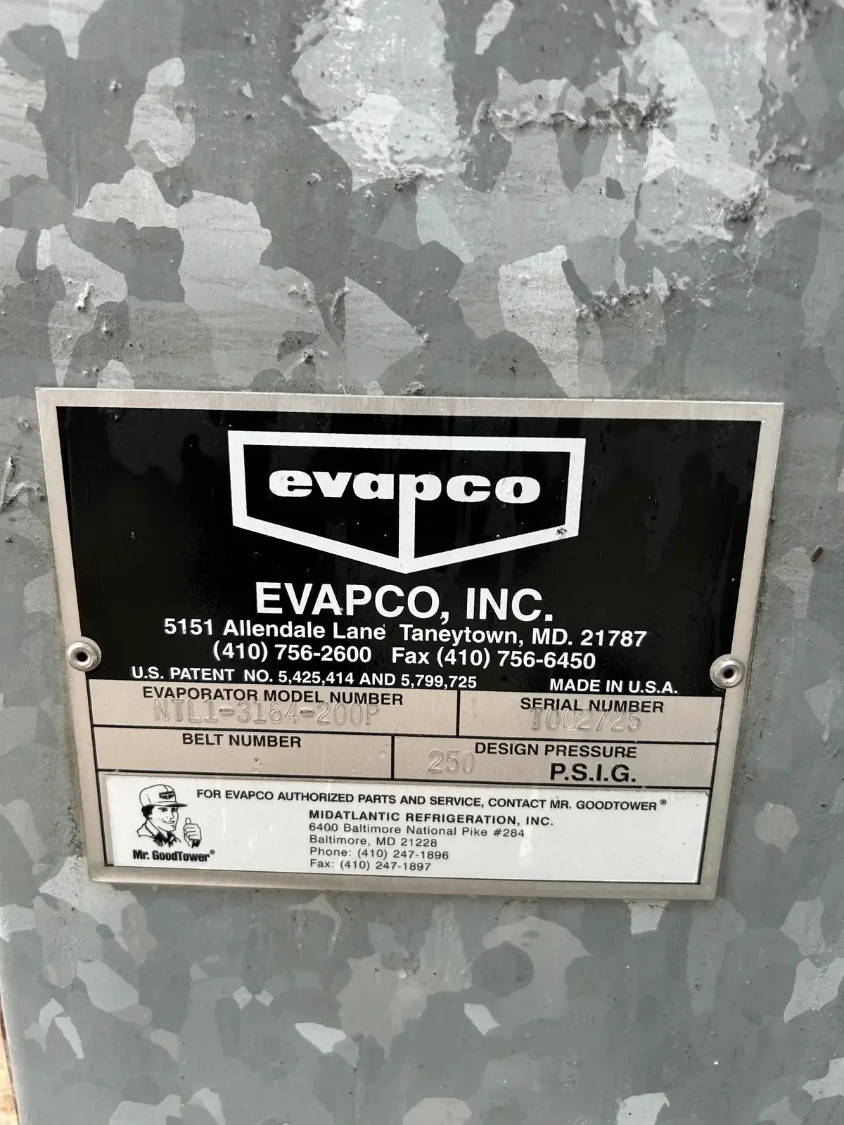 Evapco NTL1-3164-200P 230/460 Volt, 3 Phase Cooler Evaporator, 11.08 Ton, 1 fan with 2 hp fan motor. Units designed for recirculated top feed operation (ammonia).