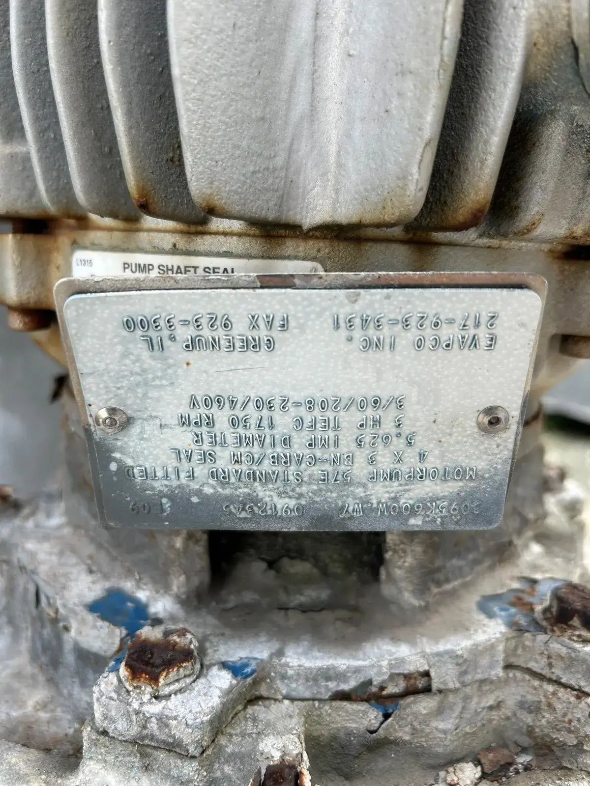 - If Multiple Motors, Motor Descriptions vs specs: (3) Fan Motors - 5 Hp, 230/460 Volts, 60 Hz. (1) Spray Pump - 3 Hp, 230/460 Volt, 3 Ph, 60 Hz.