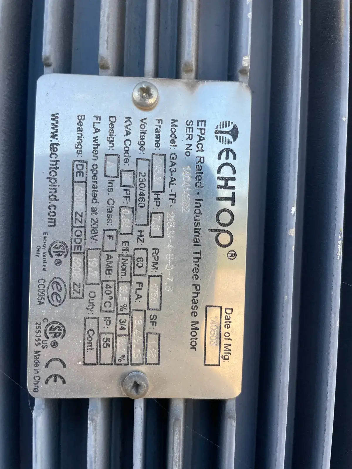 - If Multiple Motors, Motor Descriptions vs specs: (2) Fan Motors: 25 HP & 15 HP. (1) Spray: 7.5 HP.