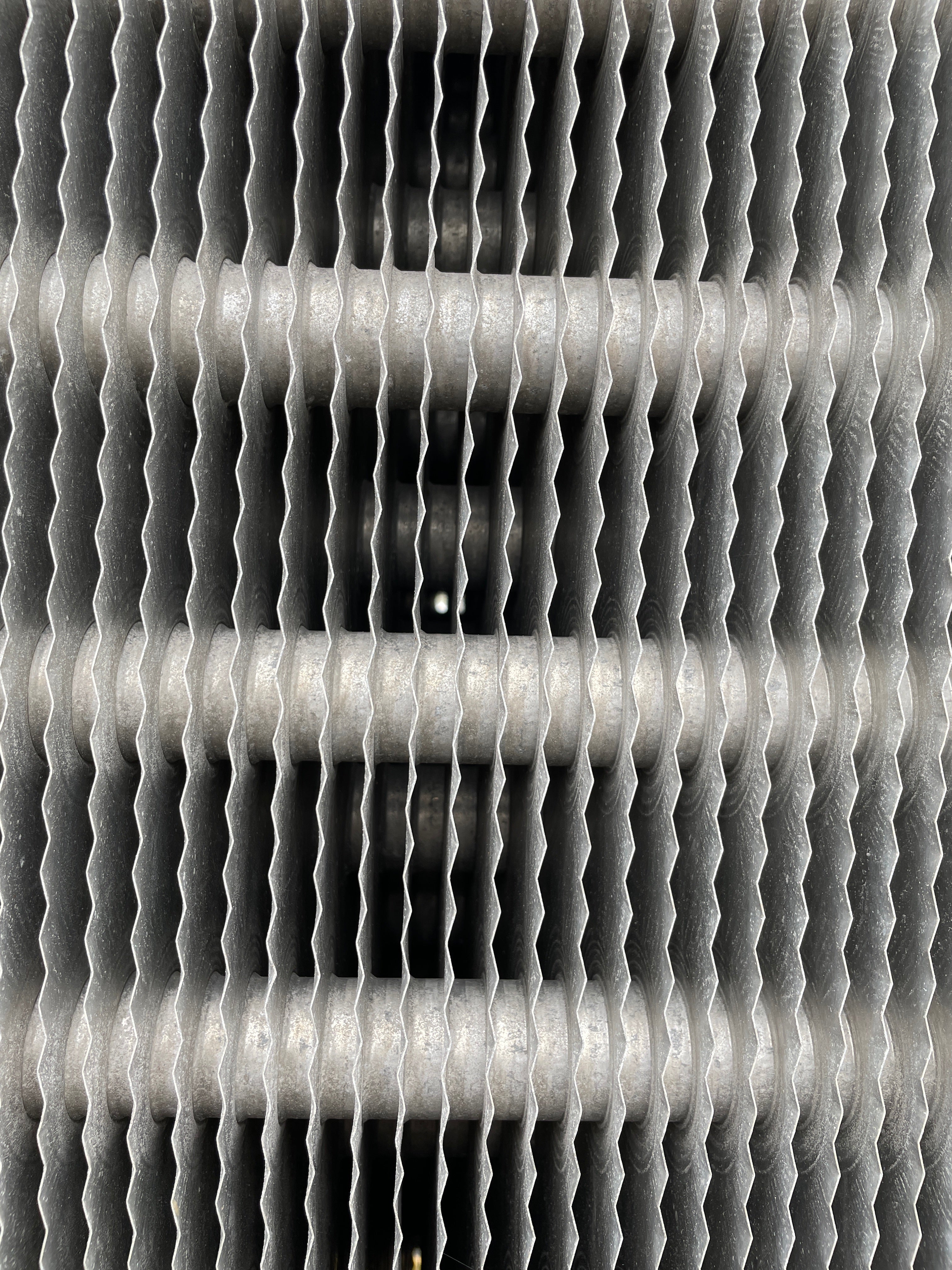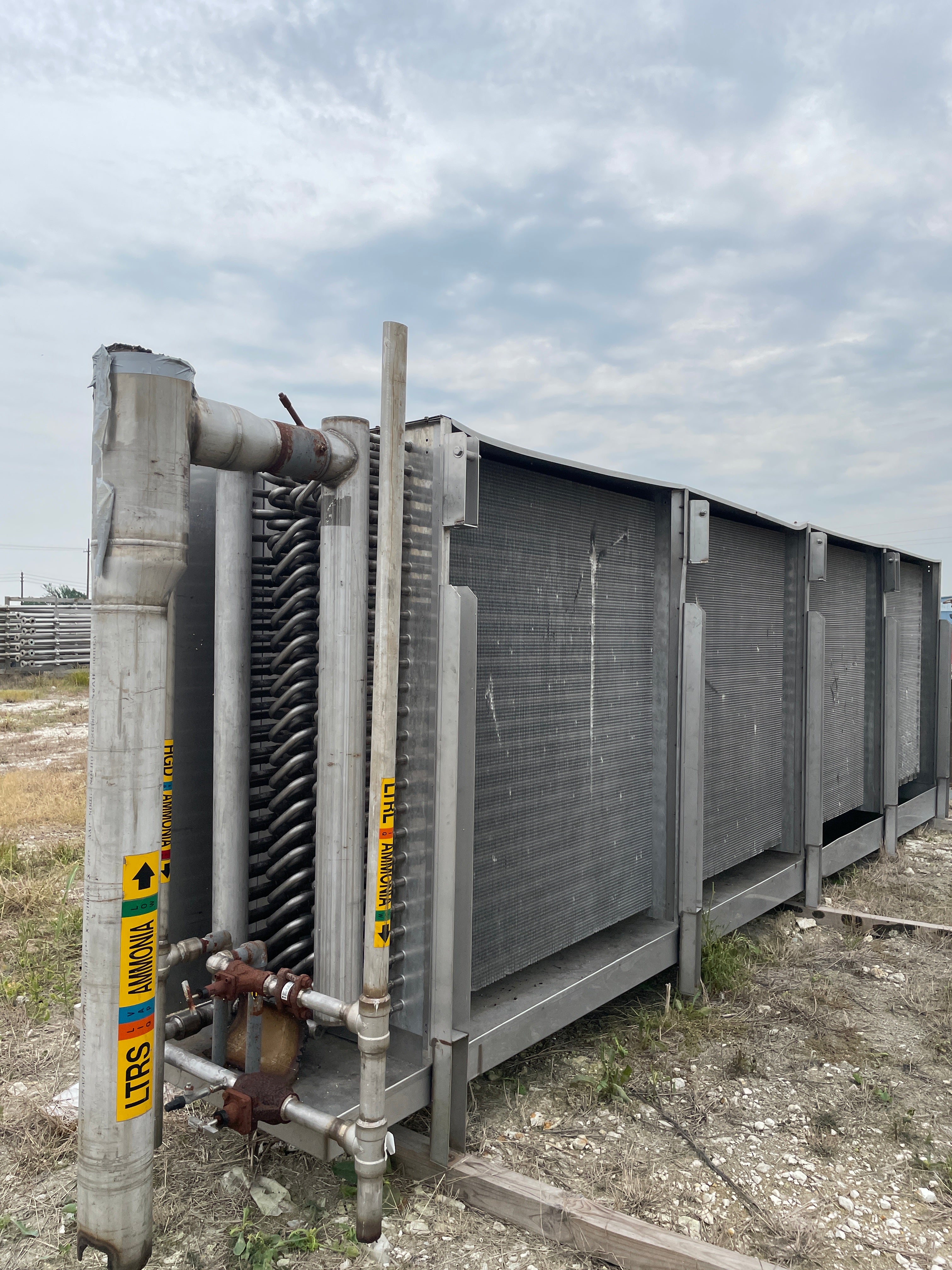 Evapco TFCS8-26612VF-10/15 Ammonia Evaporator Coil 107 TR 4 Fan (Low Temperature) Low temperature frosted coils with a capacity 85714 (BTUH / °F TD) with an estimated capacity of 107 (TR) @15TD. An Air Flow of 104520 CFM and a face velocity of 390. Bottom fed coils with a gas defrost system. Can be used with 4 fans.
