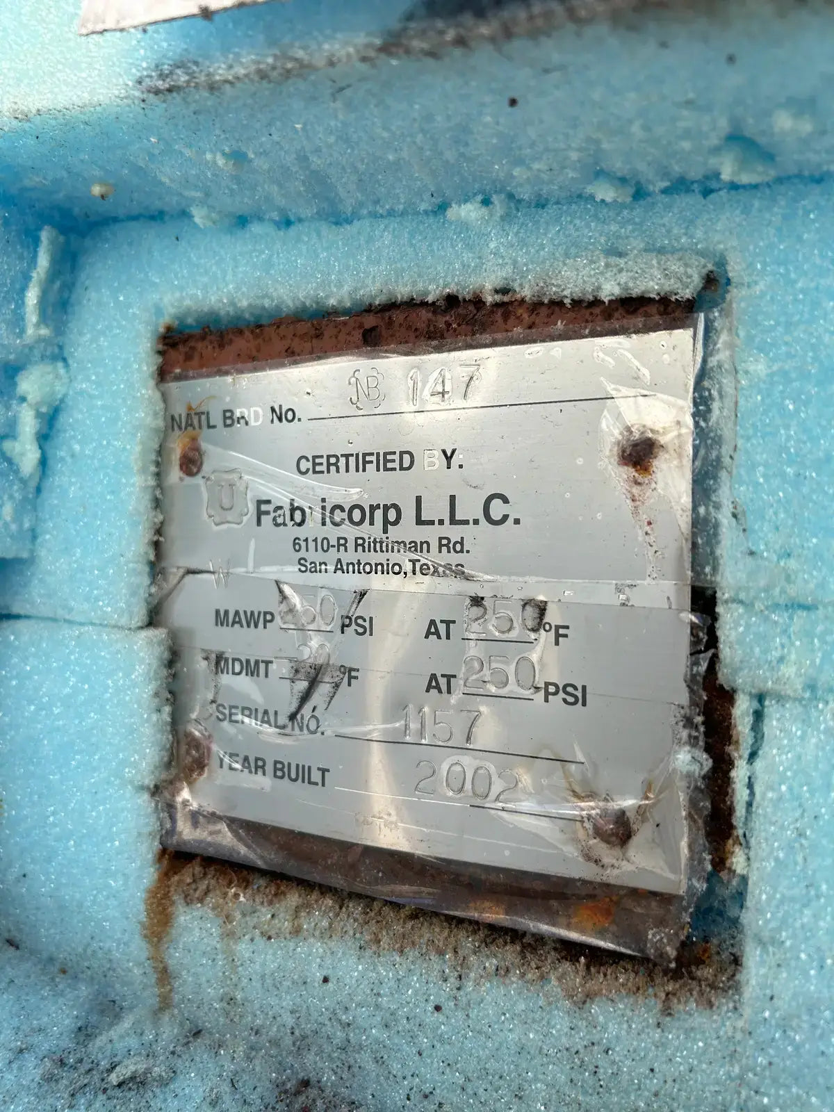 - Tank MAWP (PSI at temp): 250 PSI @ 250 F