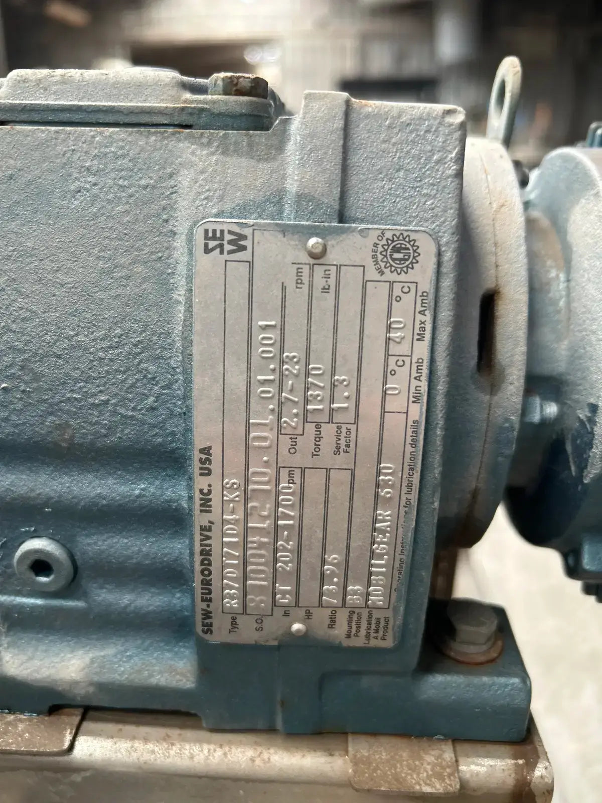 - If Multiple Motors, Motor Descriptions vs specs: (1) 0.25 hp SEW Eurodrive Motor and (1) SEW Eurodrive