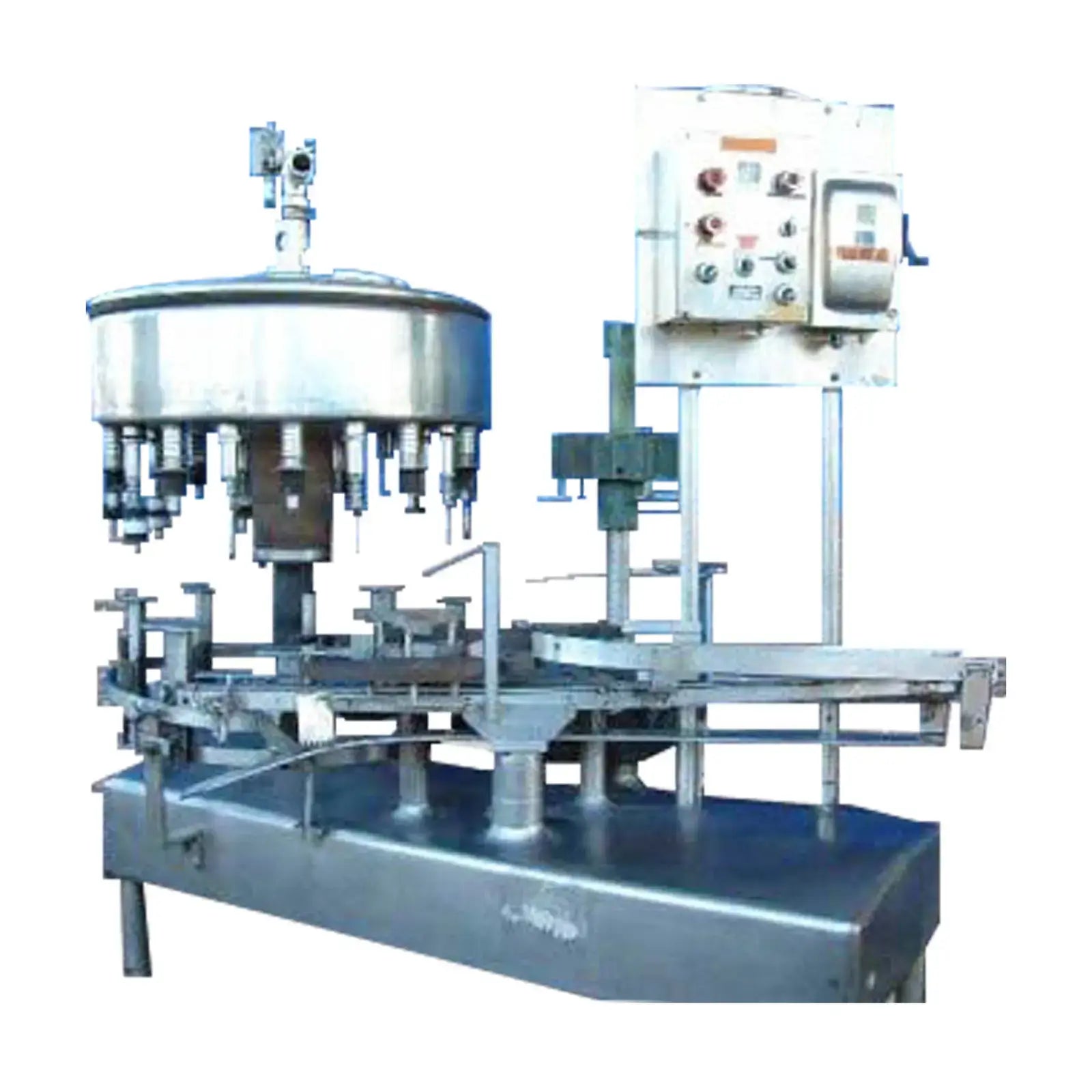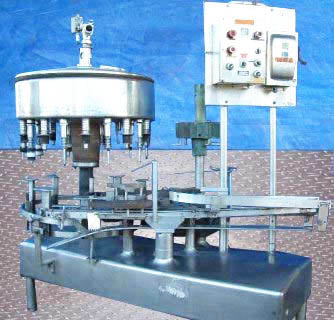 Federal Filler- 20 Head. Two sets of nozzles: (10) 1-1/8 in. and (10) 5/8 in. Center-to-center: 10.75 in. dia. Drum: 40 in. dia x 10 in. H. 220 V. Filler runs left to right, and is setup for easy changeover between two different size bottles. Overall dimensions: 82 in. L x 48 in. W x 96 in. H.(H17).