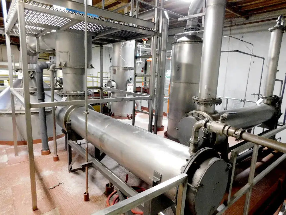- Evaporator Components Included: irculated 1st Effect , Vapor Body and Q 6" x 4" Durco Recirculation Pump, 15hp. 2nd Effect features an L&H Rotary Coil Style tank evaporator., System w/ Various Pumps, Tanks and Controls, Last Running Strawberry Puree 144 T.