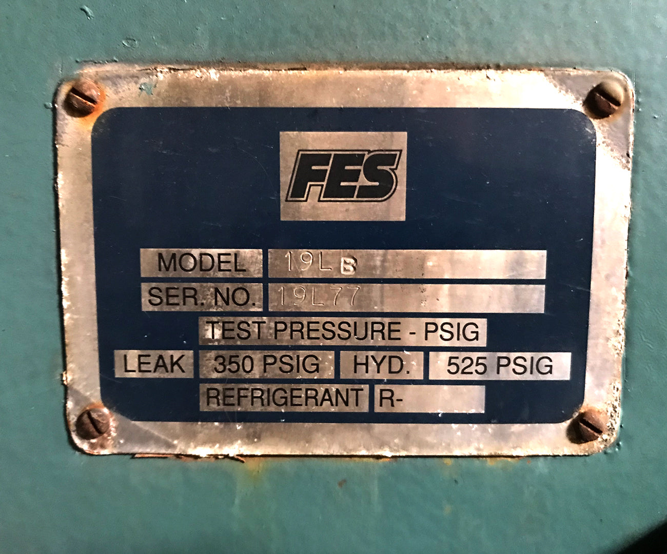 FES Rotary Screw Booster Compressor. Model: 19LB. Serial: 19L77. Year: 1994. Micro Master Controller. Runtime: 41,028 hours. Ram Industries electric motor: 125 HP, 230/460V, 3540 RPM, 3-phase, 60 Hz. Estimated weight: 8,500 LBS. Dimensions: 145 L x 63 W x 91 H.