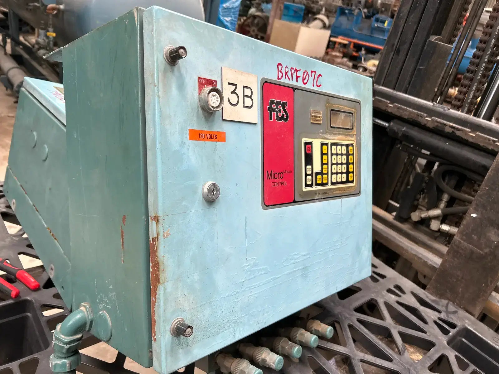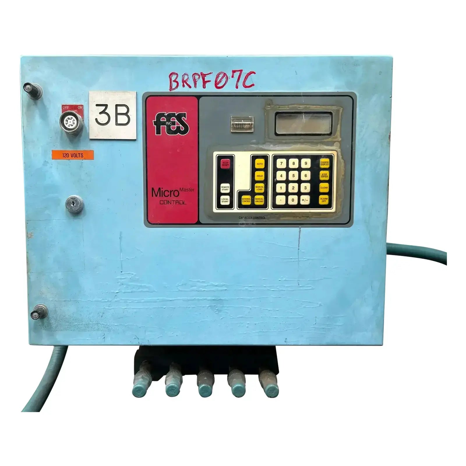 FES Micro Screw Compressor Control Panel. Model: Micro Master. Serial No: 94504032. Power Supply: 120 Volts, 60 Hz, 1 Ph. Previous paired with a FES Screw Compressor Package with a Kobe 23LB.