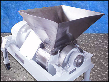 Fitzpatrick Comminuting Machine. Model F 2600 Series. For dry, heat sensitive, or liquid type products. Milling area: 8-1/2 in. x 15 in. Fixed blades: 7-1/2 in. x 3-1/2 in. x 3/8 in. In-feed Hopper: 28 in. x 28 in. x 16 in. H. Outlet: 3 in. tri-clamp. Drive: 15 hp. Screen size: 5/8 in. dia. Flanged base: 18 in. x 14 in. Overall dimensions: 63 in. L x 39 in. W x 52 in. H.