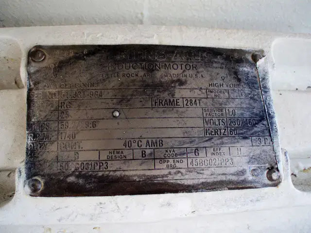 - If Multiple Motors, Motor Descriptions vs specs: (1) 25 hp Siemens Electric motor, and (1) 7.5 hp Electric Motor