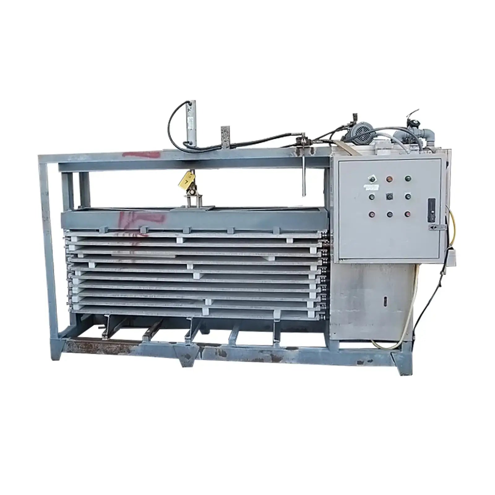 Flohr Plate Heater Press. Sheffer Hydraulic Cylinders. (10) Aluminum 84 in. x 24 in. x 1 in. Plates. Motor & Water Pump System Controls.