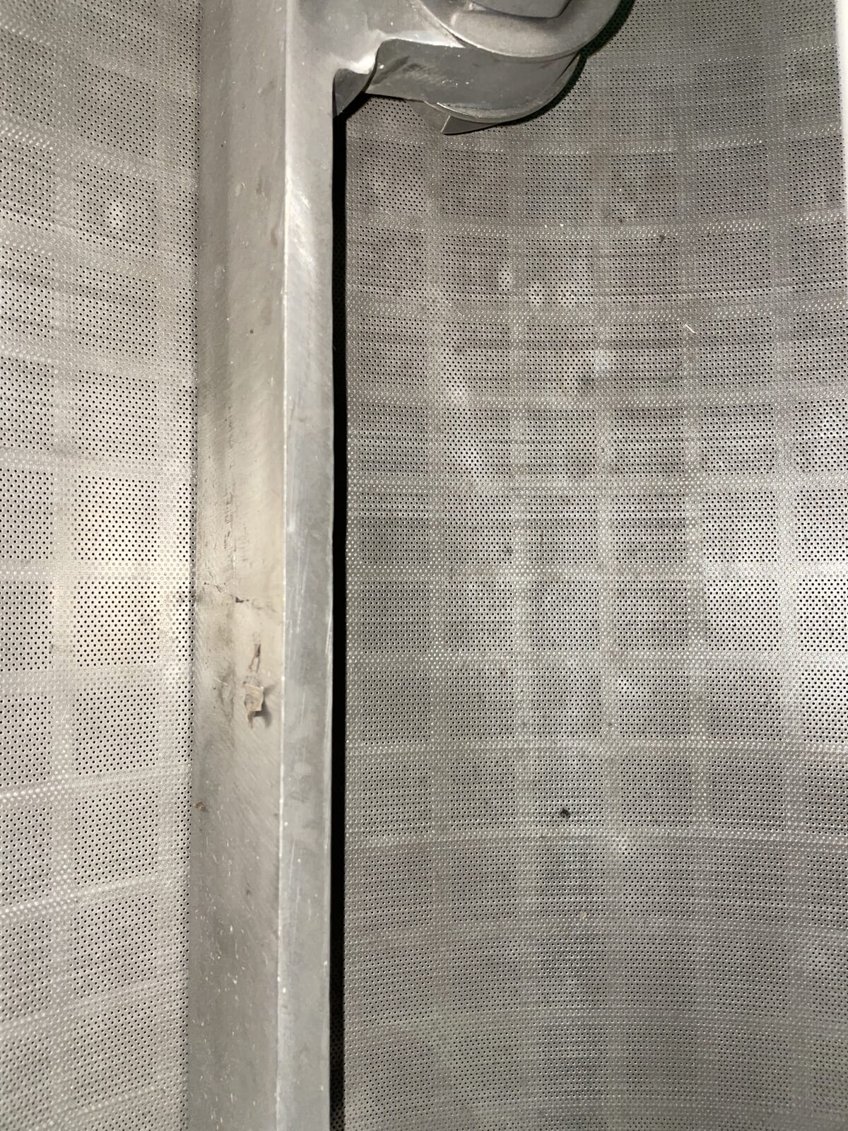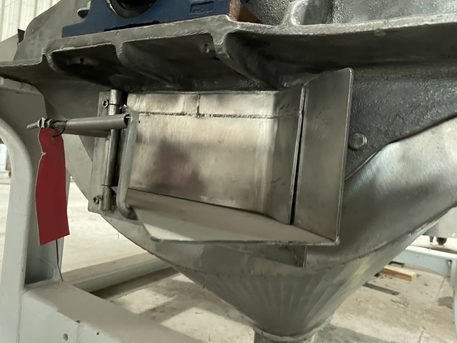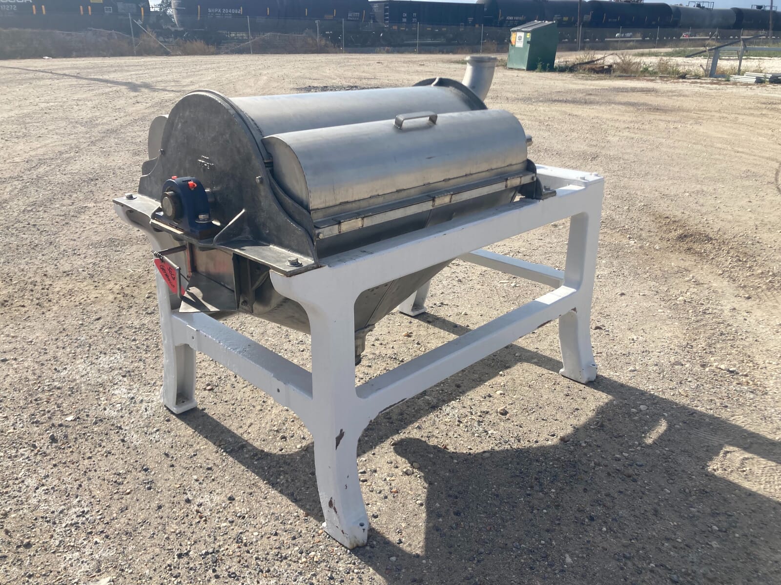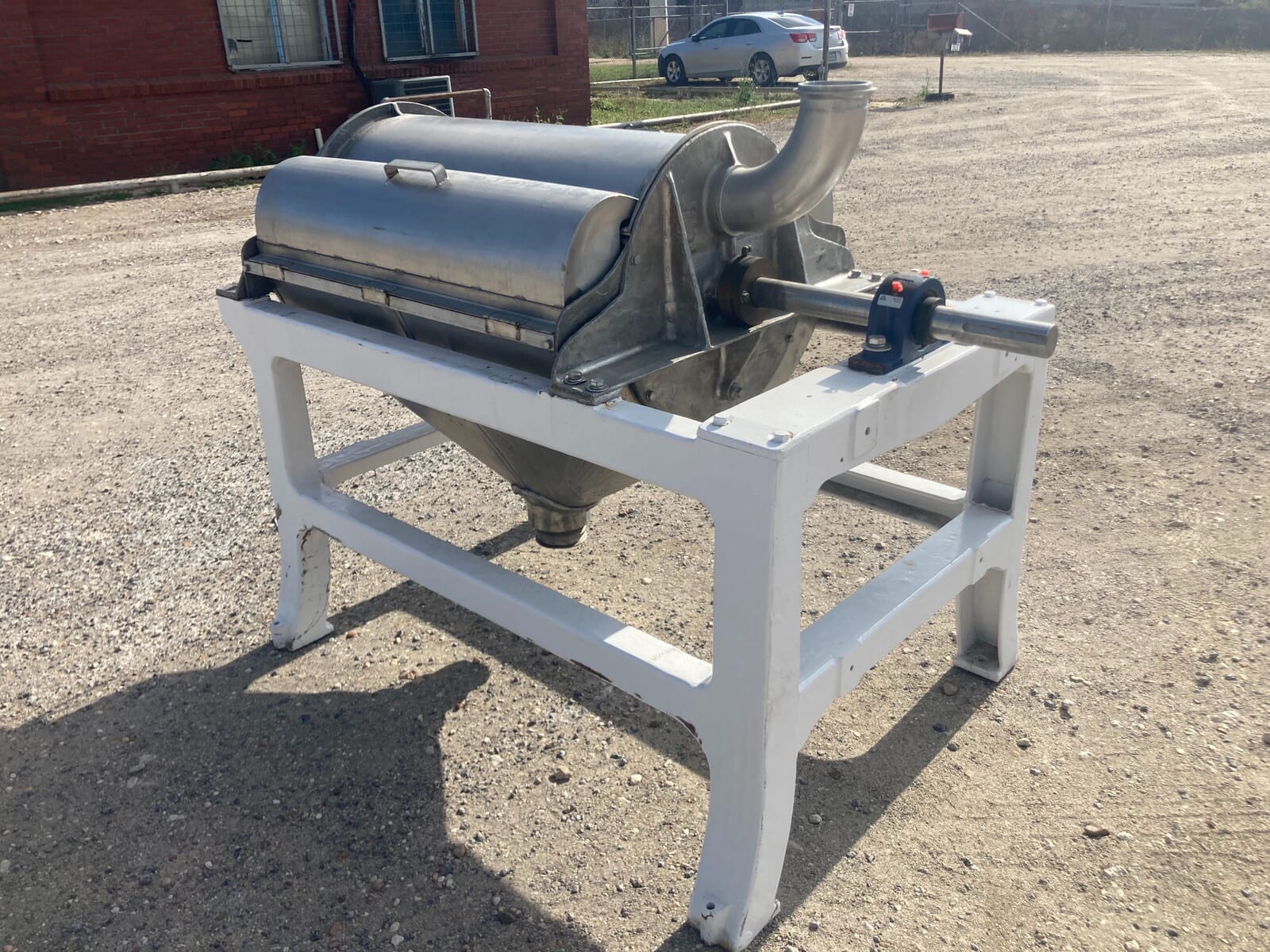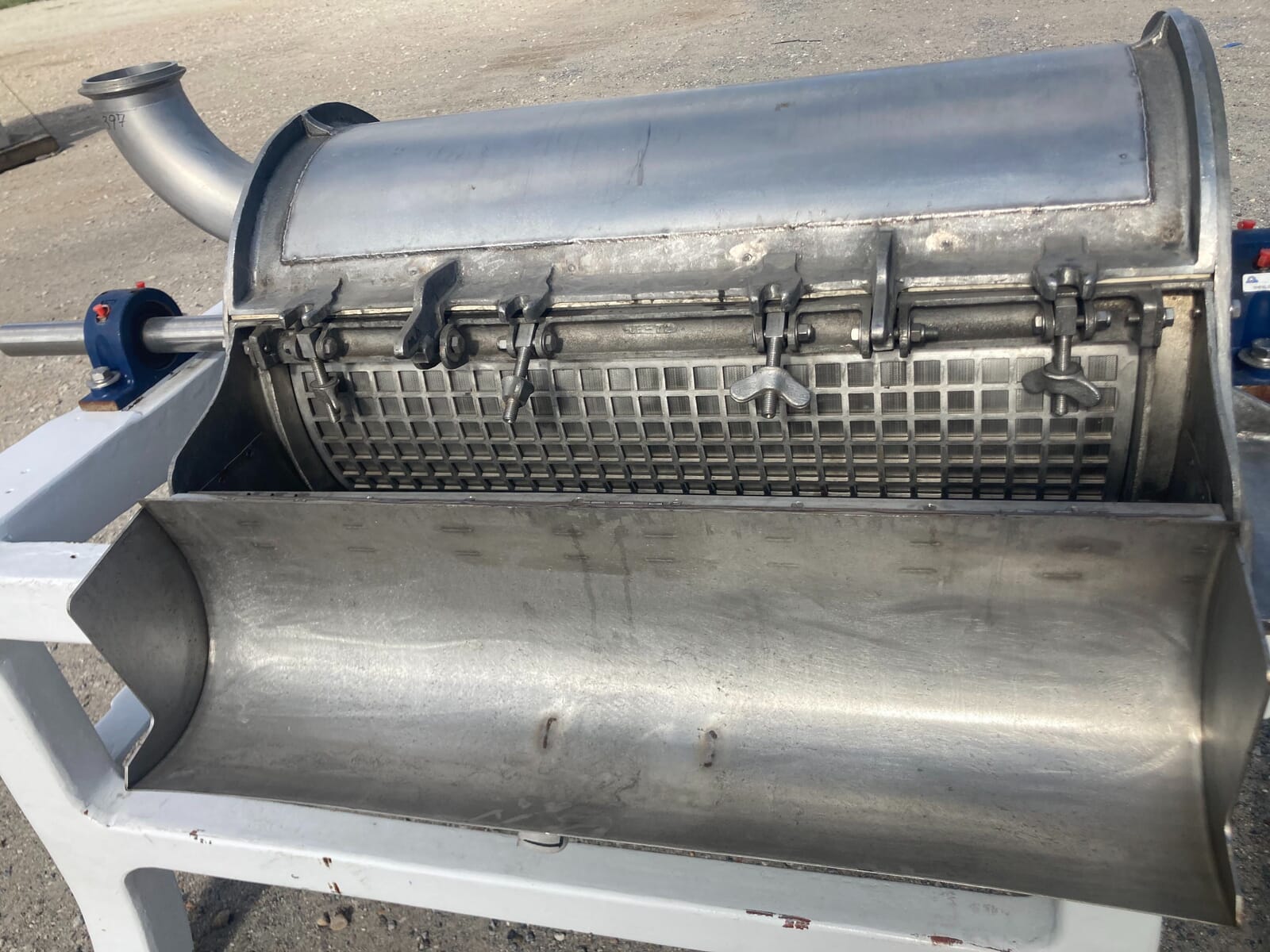 FMC Stainless Pulper Finisher - The unit is missing a data plate. Model: 100.(4) Paddles. Product Intake: 4 in. Screen on the unit is a .027 Dia. hole screen. The FMC Pulper/Finisher reduces tomatoes, fruits, and vegetables to a semi-liquid or liquid state. It eliminates pits from stone fruit pulp and separates seeds, skins, and extraneous particulate materials from the pureed pulp. Overall dimensions: 64L x 34W x 48H.