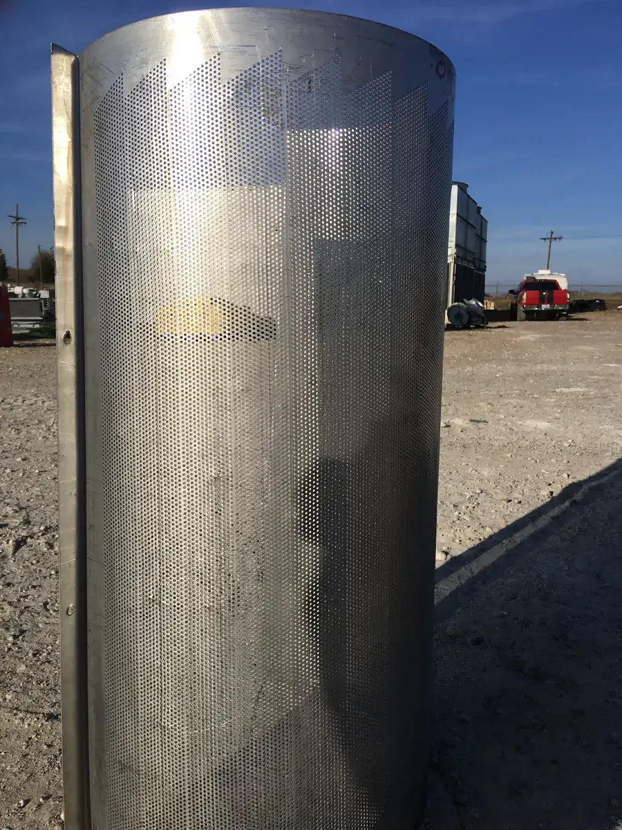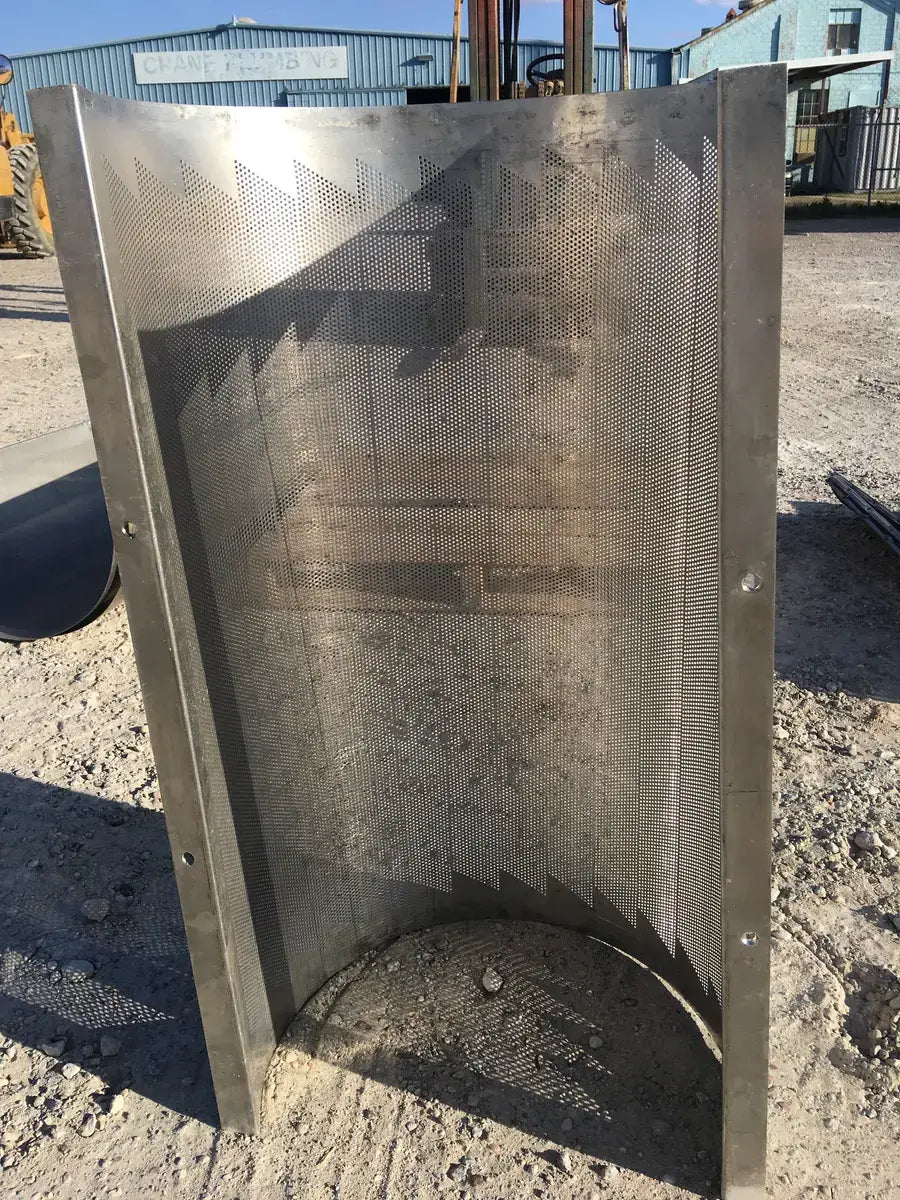 The size is a .090 size screen. The size of the holes determines the amount of pulp or finish of the product. The pulper/finisher can also be fitted with brushes to remove remaining fruit from pits.
