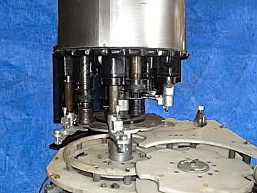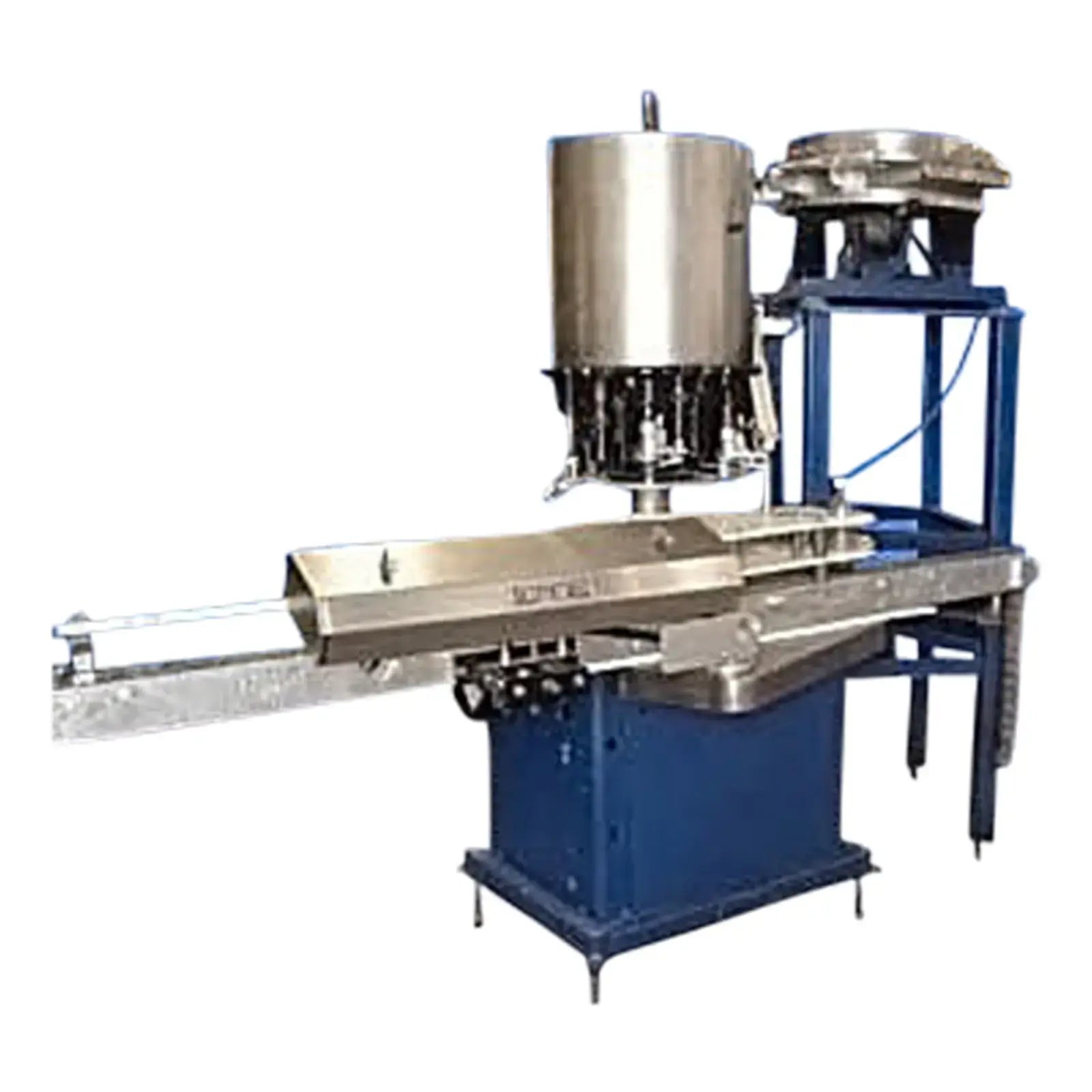 Free Standing Consolidated 6 Spindle Capper. Model F-30. S/N 4937. set to run 200 bpm, 28 mm caps. 3 hp, 230/460 V, 3 ph. Capper dimensions: 100 in. L x 41 in. W x 88 in. H. This capper is set to run left to right. The cap feeders dimensions are: 34 in. x 36 in. W x 86 in. H.(H14)(XMR113a).