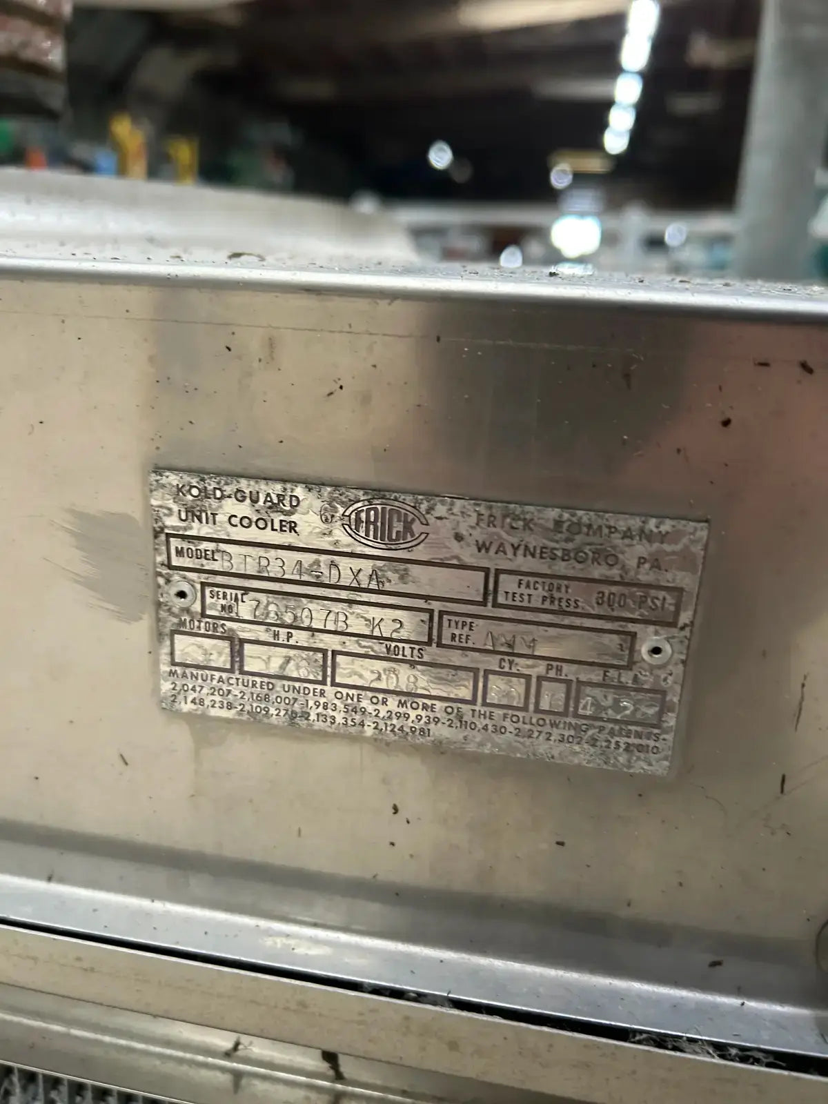 Frick BTRS34-DXA Cooler Evaporator. 3 fans, 1/6 hp motors and 6,000 CFM, Stainless steel cabinet and drain pan. Unit is designed for direct expansion feed (ammonia). 2.5 Ton (30,000 Btuh @ 10 degree TD)