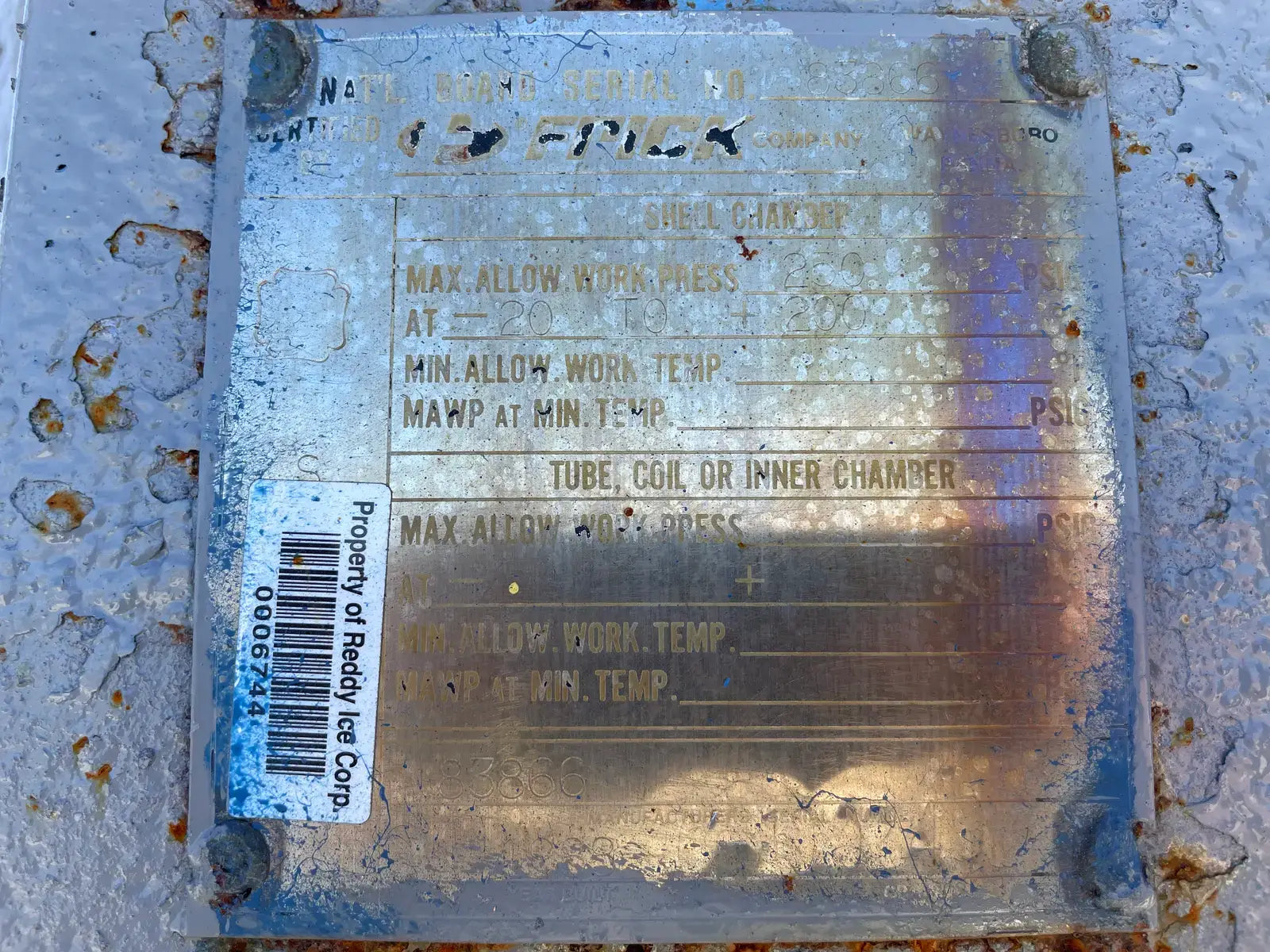 Frick Tube Ice Maker. Previous Refrigerant: Ammonia. Tons Per Day: 20. Ice Style: Tube. Ice Dimensions: 7/8 O.D. Ice