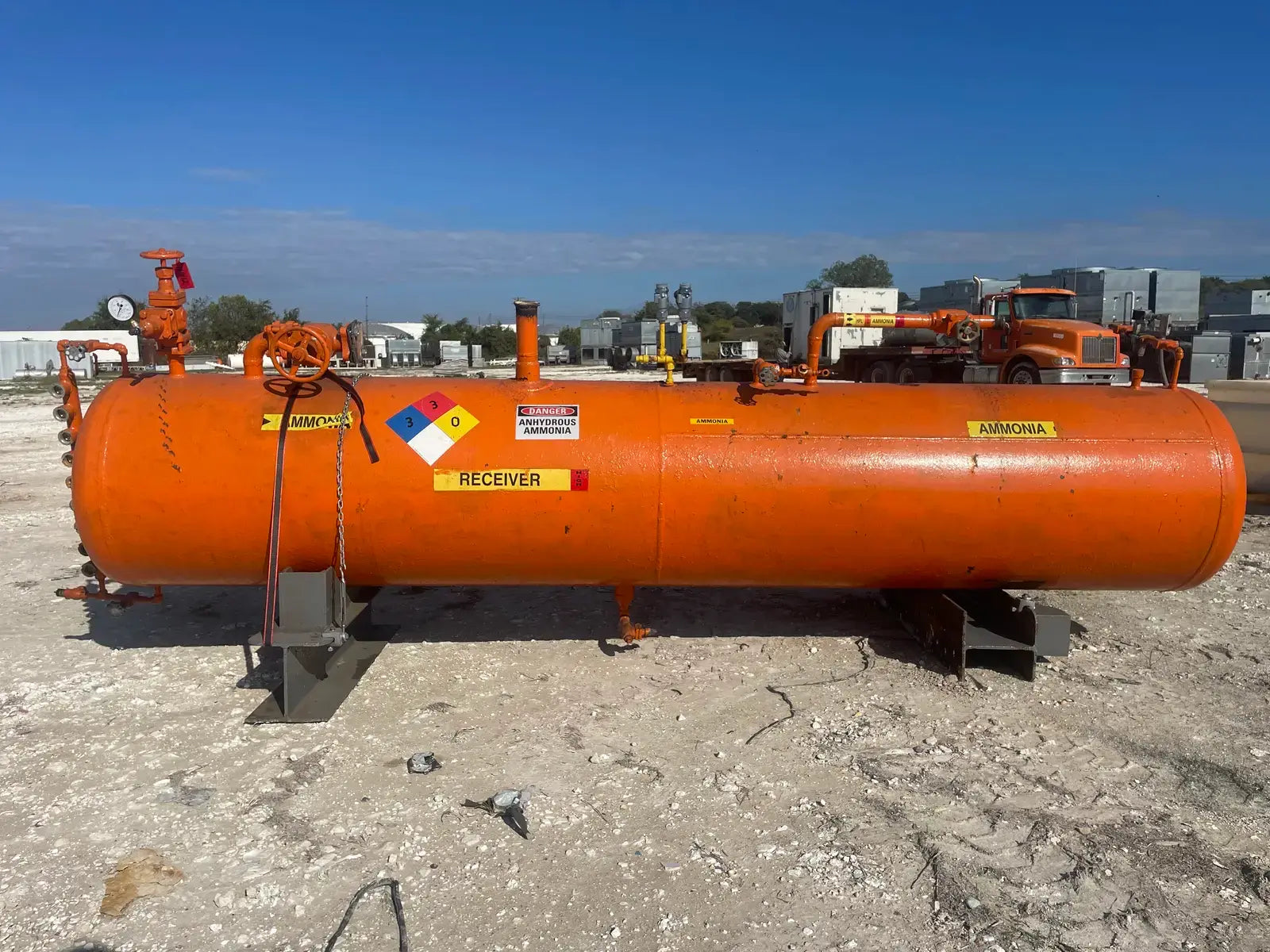Frick Horizontal Ammonia Receiver. National Board: 24530. Max Working Pressure: 250 PSI. Max Temperature: 650 F. Year Built: 1961. Vessel Dimensions: 36 X 144. Estimated Capacity: 740 Gallons.