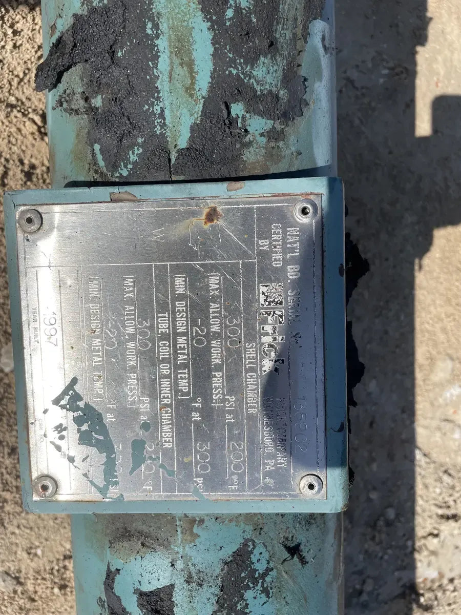 Frick Horizontal Ammonia Receiver ( 10in. x 60in. Gallons) Serial Number: 135902. Tank National Board Number: 135902. Tank Estimated Capacity (Gallons) 23. Tank MAWP (PSI @ Temp): 300 PSI @ 200 F . Tank MAWT (PSI @ Temp): -20 F @ 300 PSI. Previous Refrigerant was Ammonia (R717 | NH3).