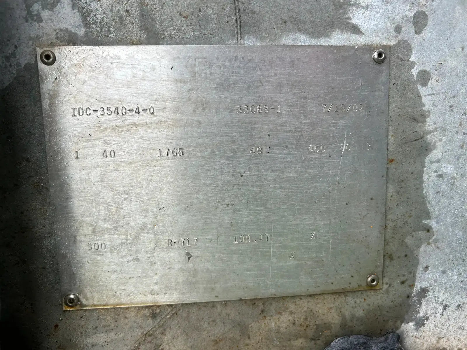 Frick IDC Series Single Ammonia Evaporative Condenser. Model: IDC-3540-4-Q. Serial No: 33083-1. Design Pressure: 300. Refrigerant: R-717(Ammonia). Coil Volume: 27.35. Nominal Tons: 885 TR. Ammonia Tons (R-717): 627.65 TR.