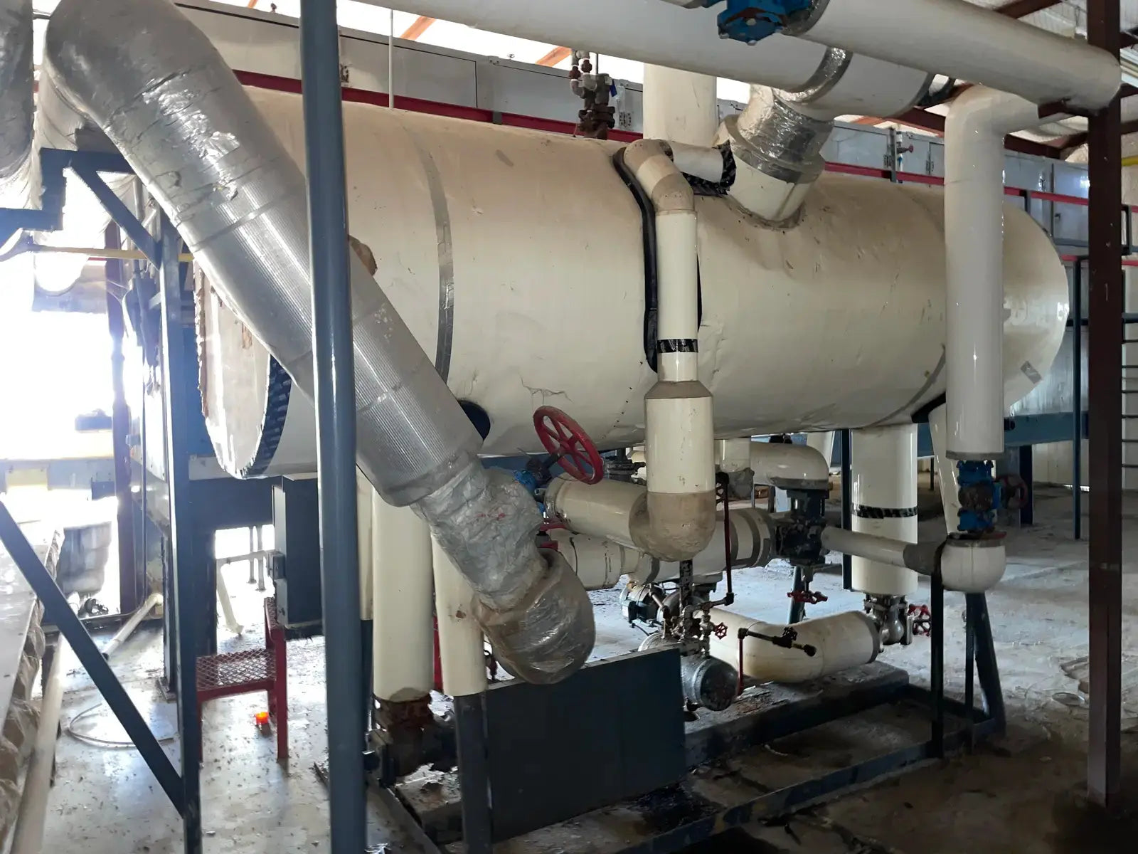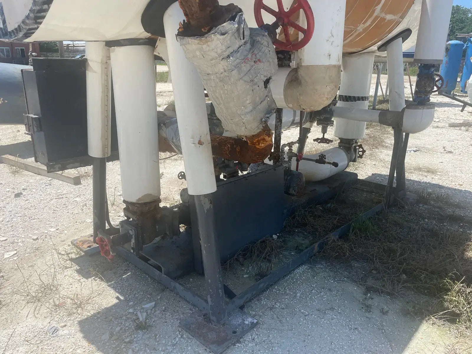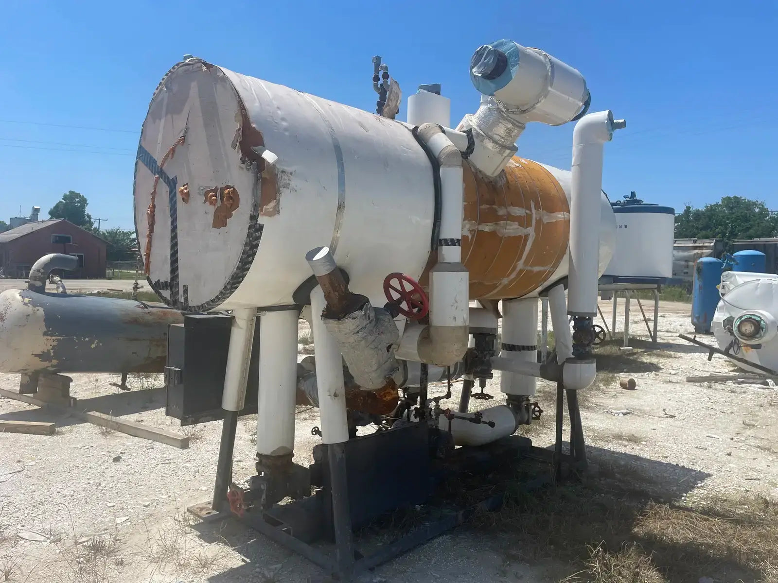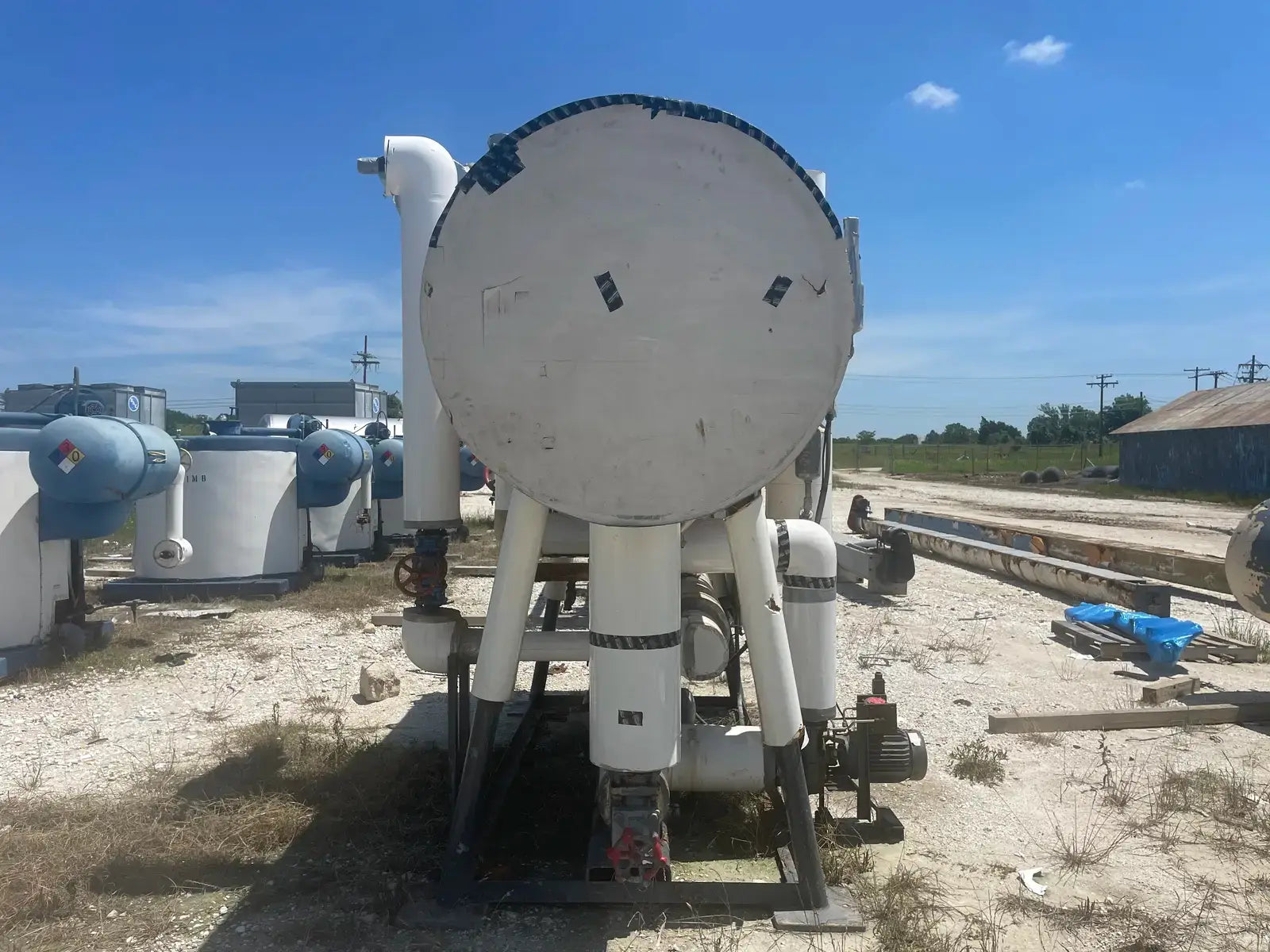 Frick PRR Horizontal Ammonia Recirculator. National Board: 44074. Shell Chamber: Max Allowable Working Pressure: 150 PSIG @ -20 F to 200 F. Capacity: 60-165 Ton. Mat'l SA: 515 70, Year Built: 1981. ASME OW: 12-C. Cornell Ammonia Pump (1): Model: 2CB-5-4. Serial No: 119352 10.19. Year Built: 2000. GPM 120. PSID: 30. Frick Oil Pot: Shell: .277. Head: 0.25. Max Allowable Pressure: 150 PSIG @ 200 F. Estimated Capacity: 700 Gallons. Overall Vessel Dimensions: 38dia X 132L